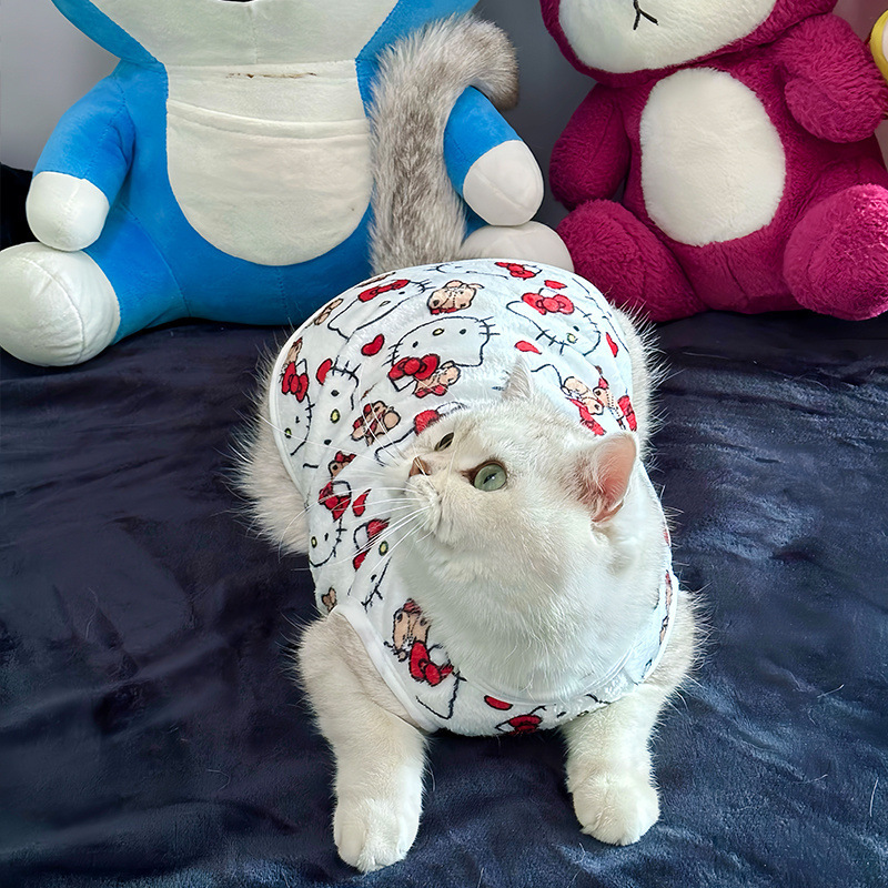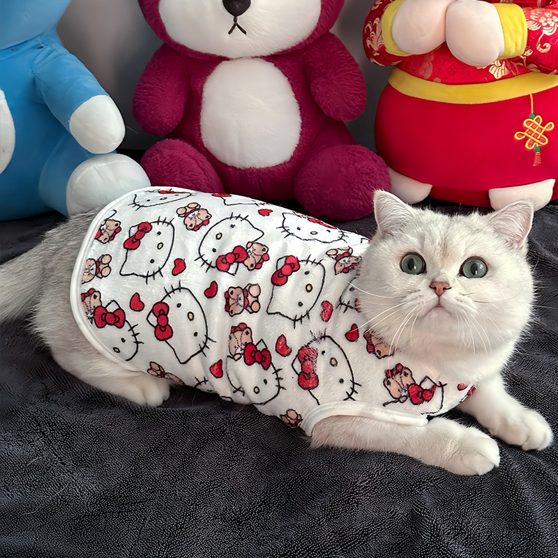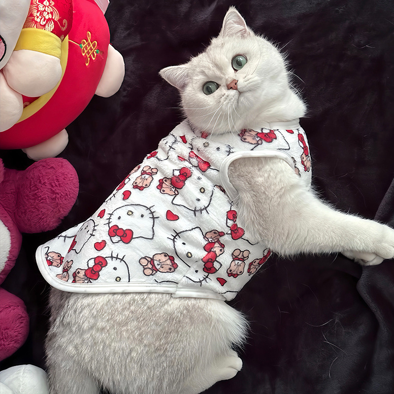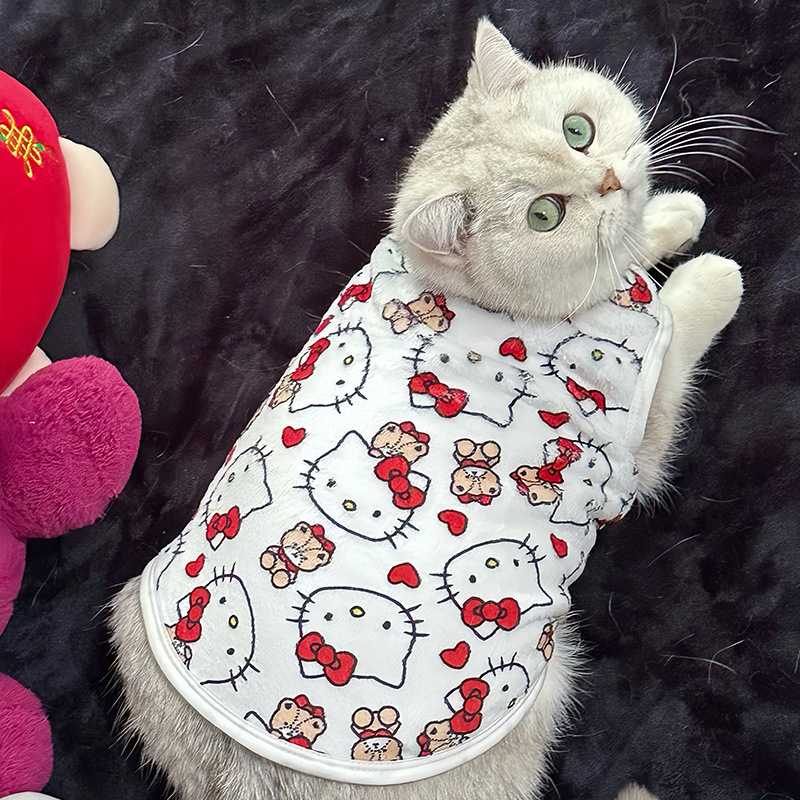 Kt 헬로 키티 애완 동물 고양이 옷 가을, 겨울 두꺼운 플란넬 탈착 방지 풀오버 조끼 스타일 면화 코트스토어 가기