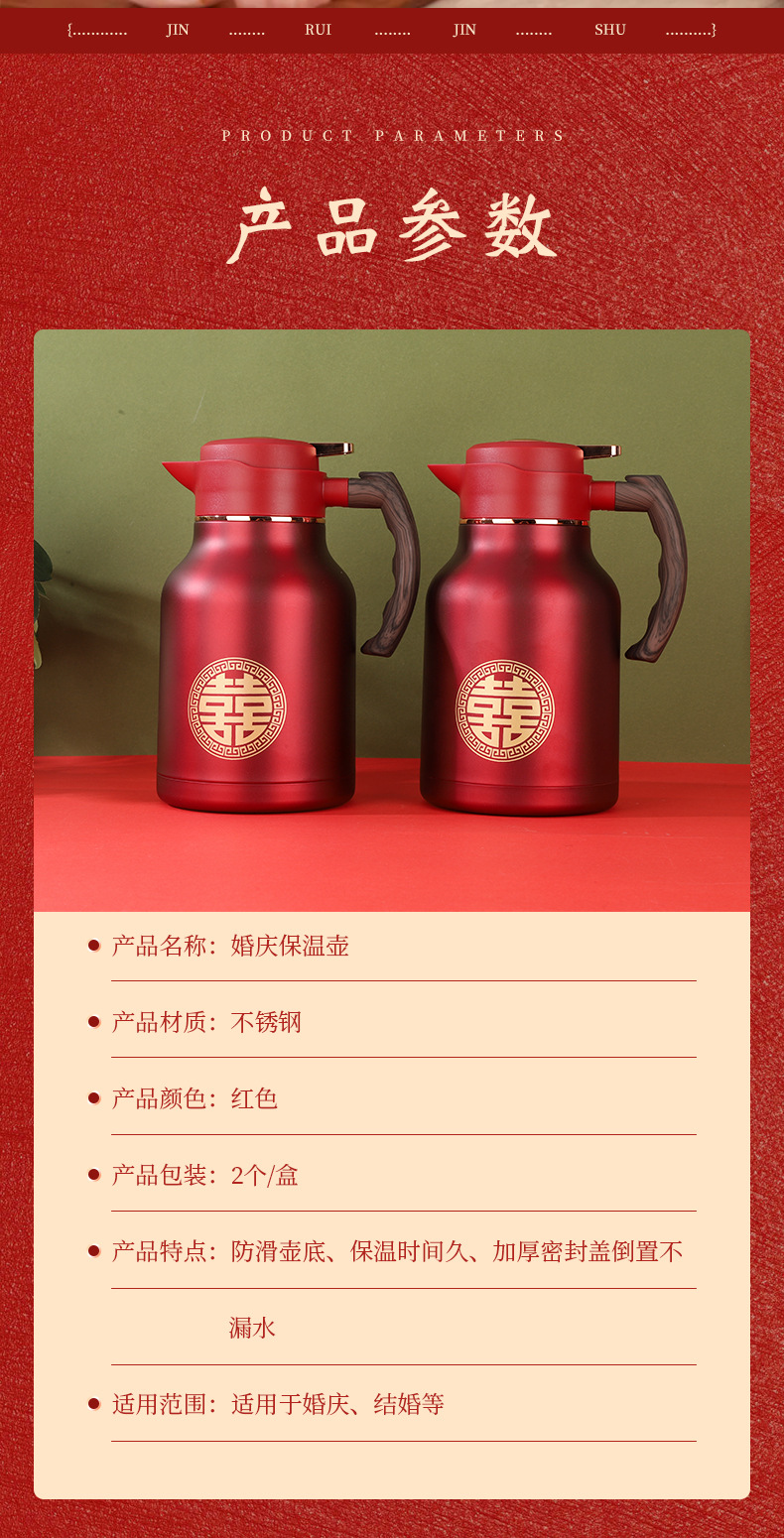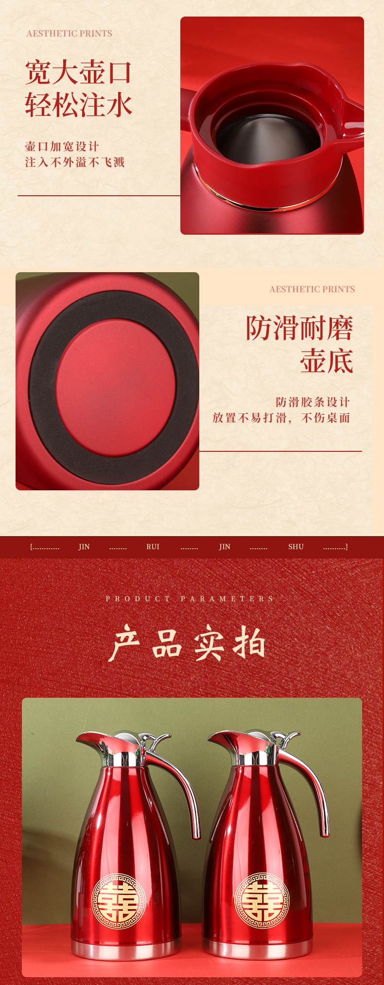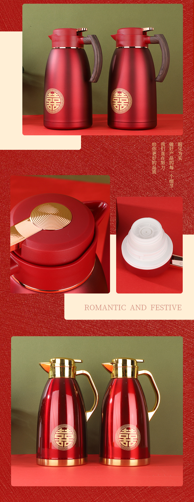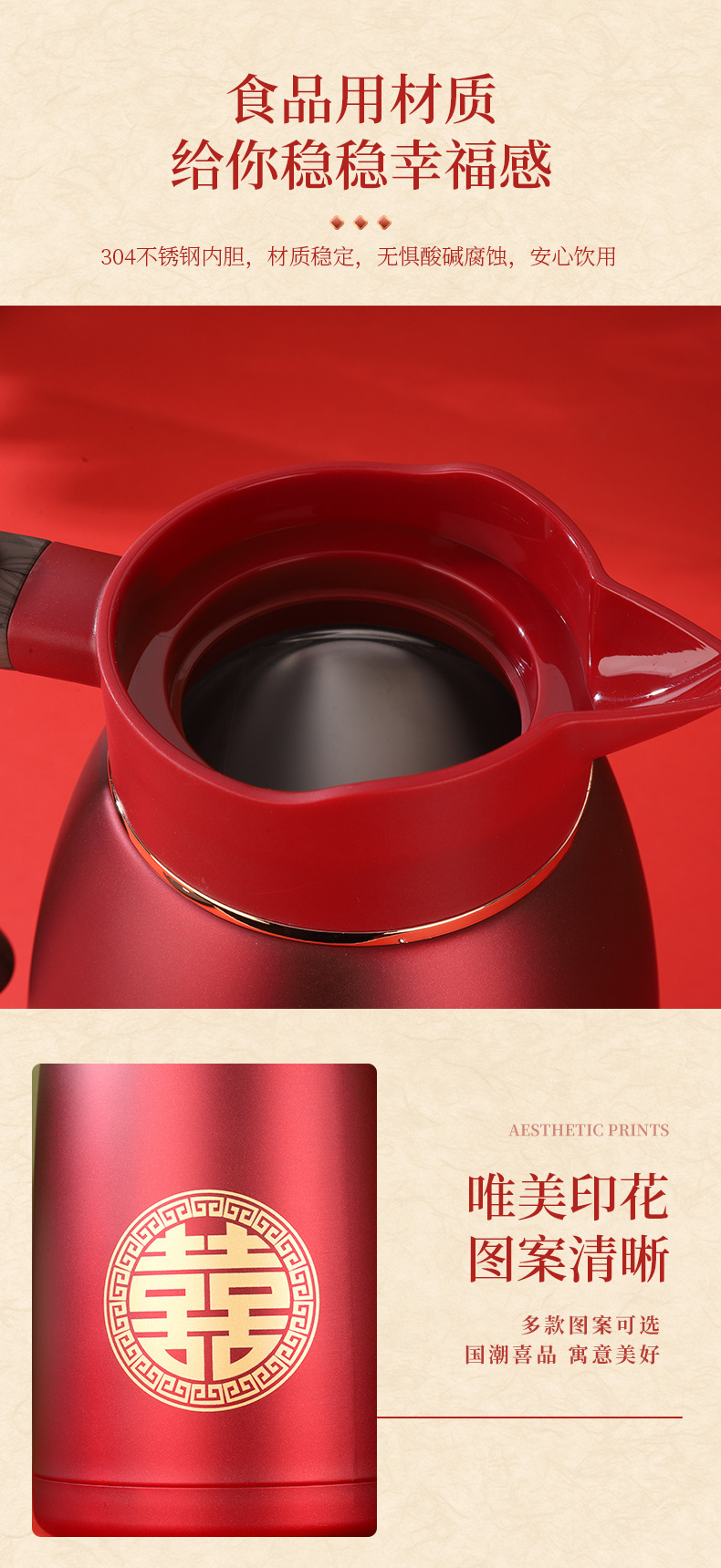 304 스테인레스 스틸 보온병 주전자, 결혼식 보온병, 축제 보온병, 결혼식 보조 주전자, 빨간색 가정용 주전자스토어 가기