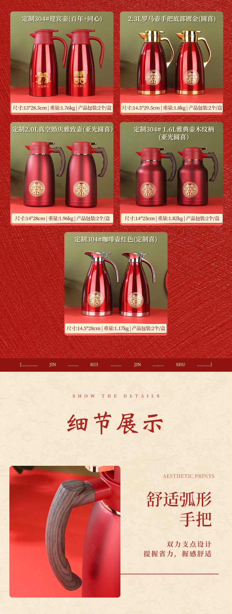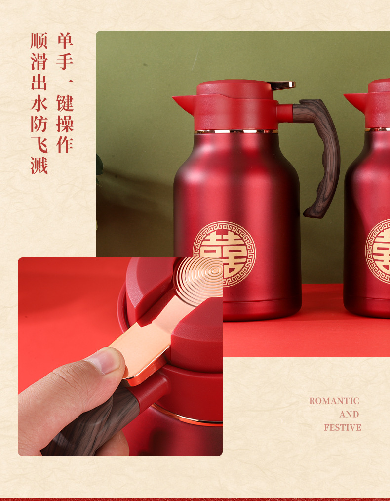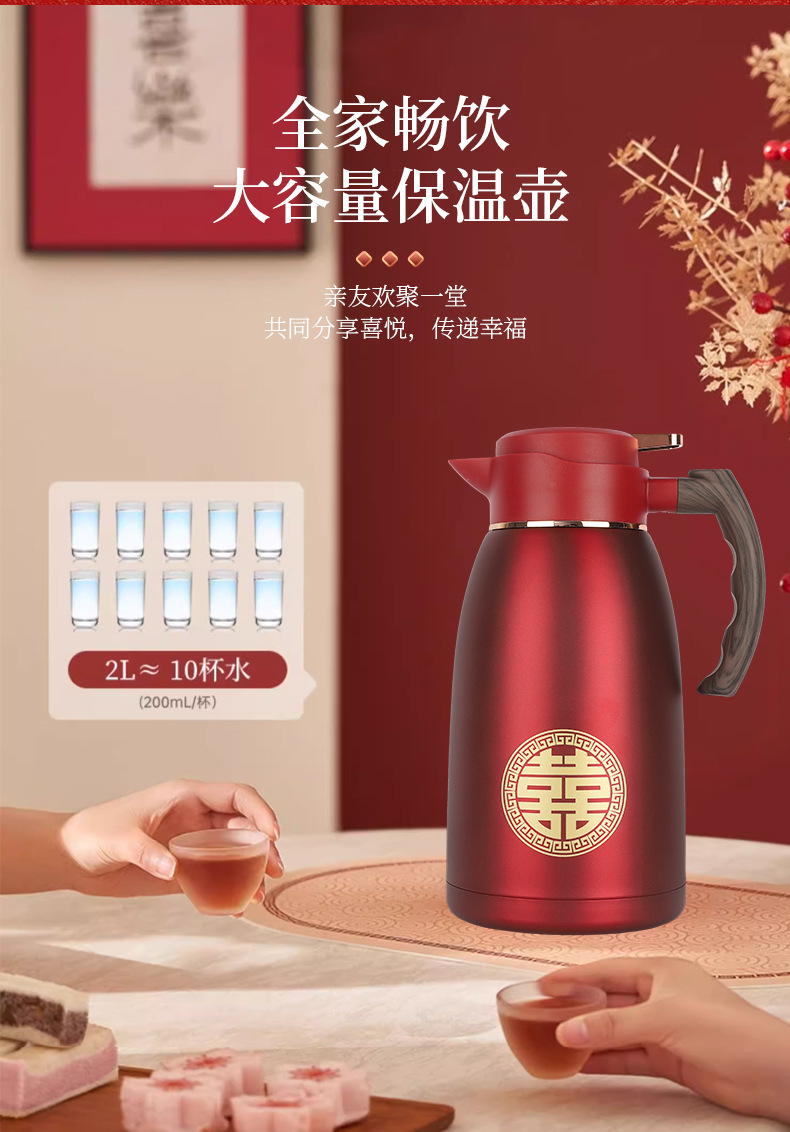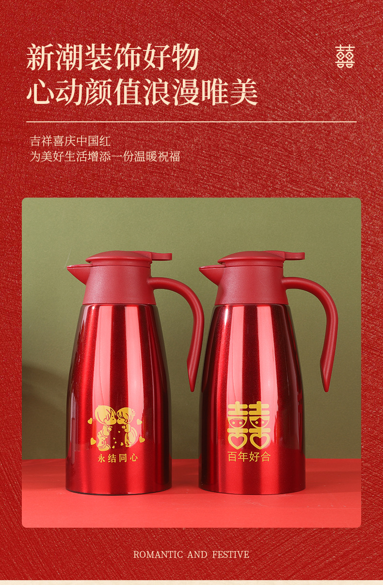 304 스테인레스 스틸 보온병 주전자, 결혼식 보온병, 축제 보온병, 결혼식 보조 주전자, 빨간색 가정용 주전자
