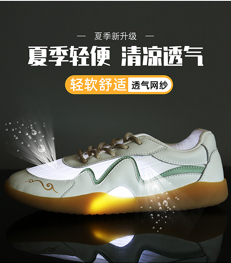 남성과 여성을 위한 여름 부드러운 밑창 태극권 신발, 통기성, 미끄럼 방지 및 내마모성 무술 특수 신발, 힘줄 밑창, 천연 가죽, 통기성 아침 운동화