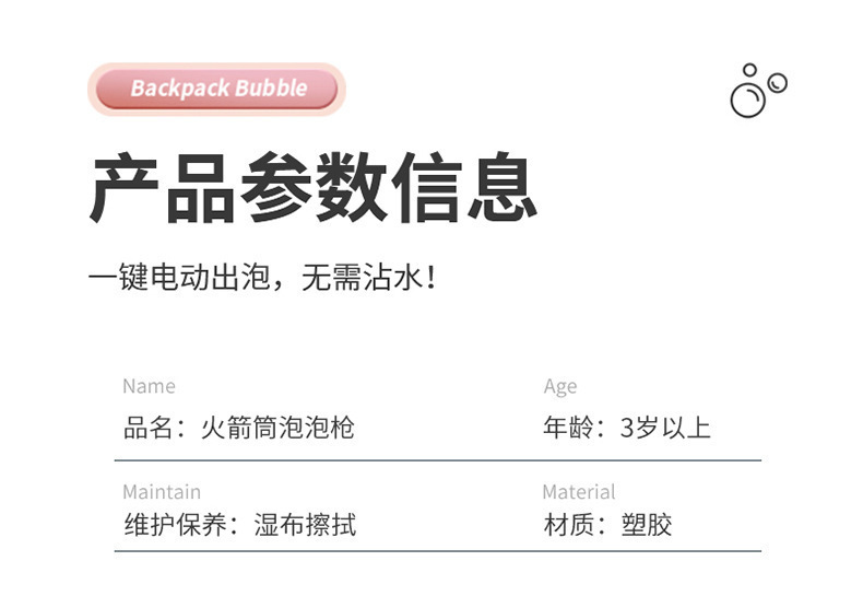 • 전자동 N 홀-백팩 스타일-걸리 파우더-버블 리퀴드 10팩
