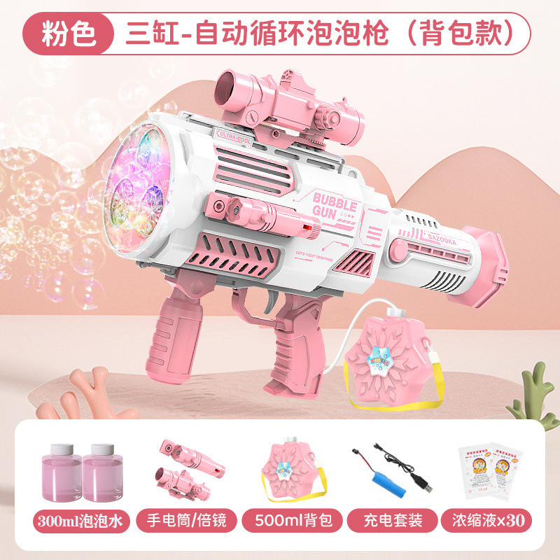 전기 완전 자동 버블 머신 개틀링 인터넷 연예인 버블 건 어린이 야외 휴대용 버블 부는 소년과 소녀 장난감스토어 가기