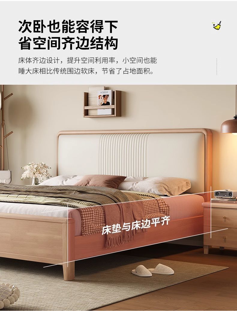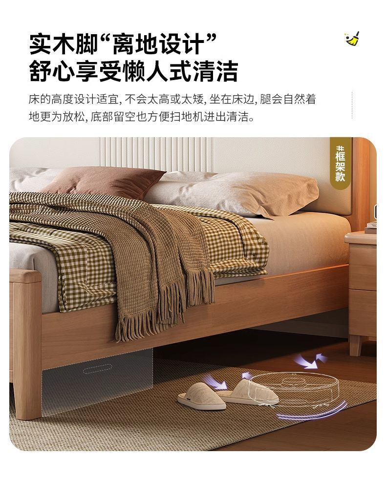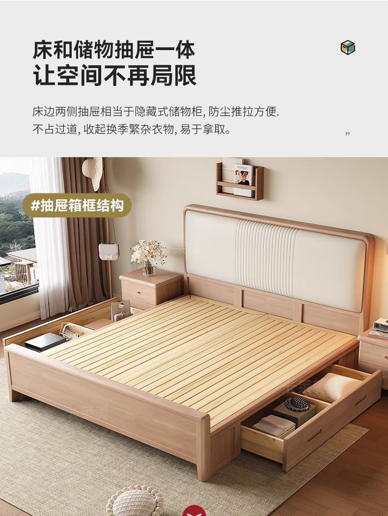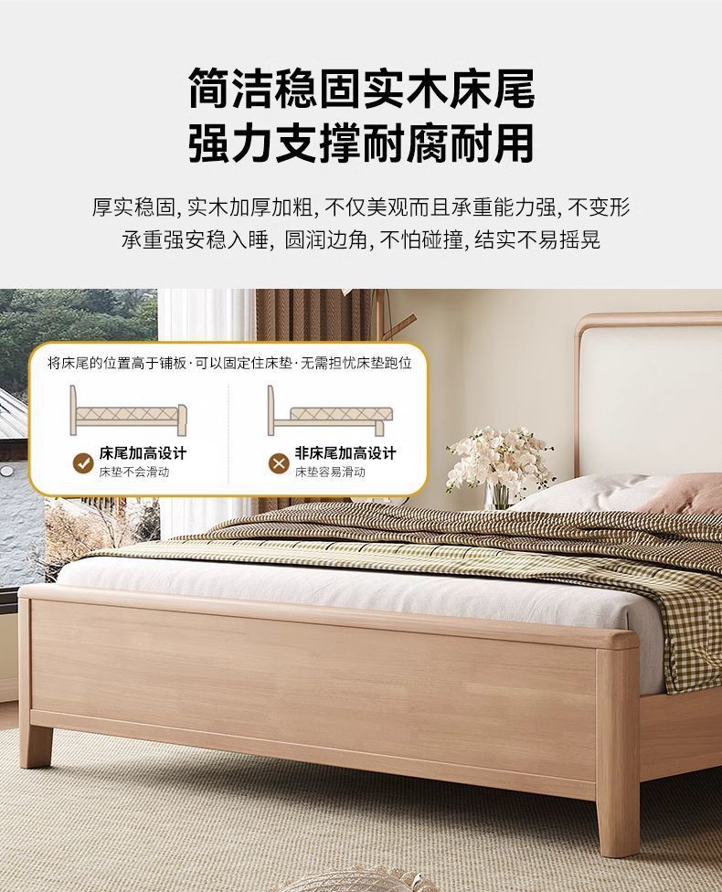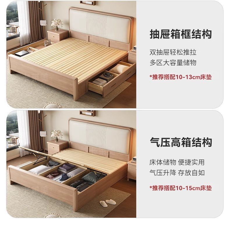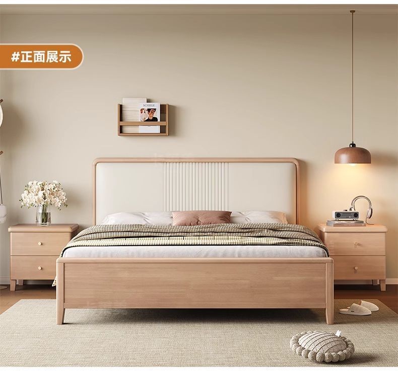 북유럽 너도밤나무 원목 침대 1.8m 소프트 패키지 모 루빙 1.5m 원목 침대 모던 심플 하이박스 수납 침대