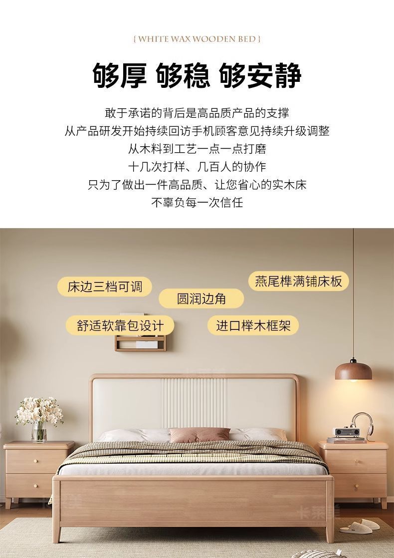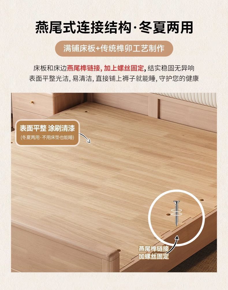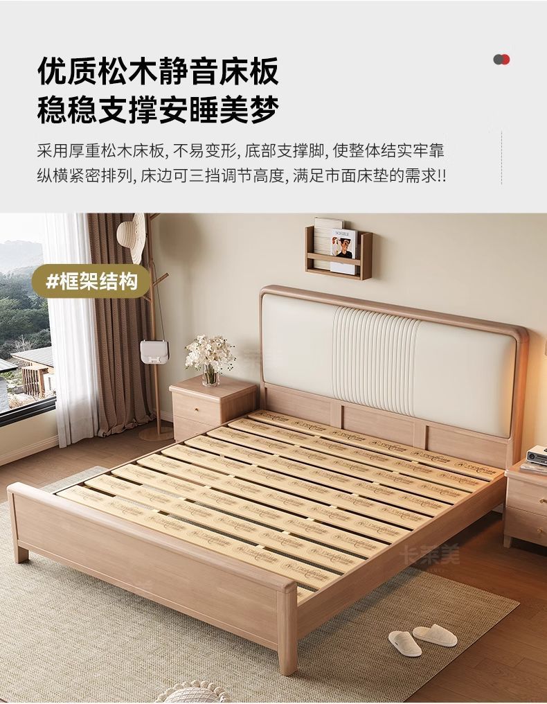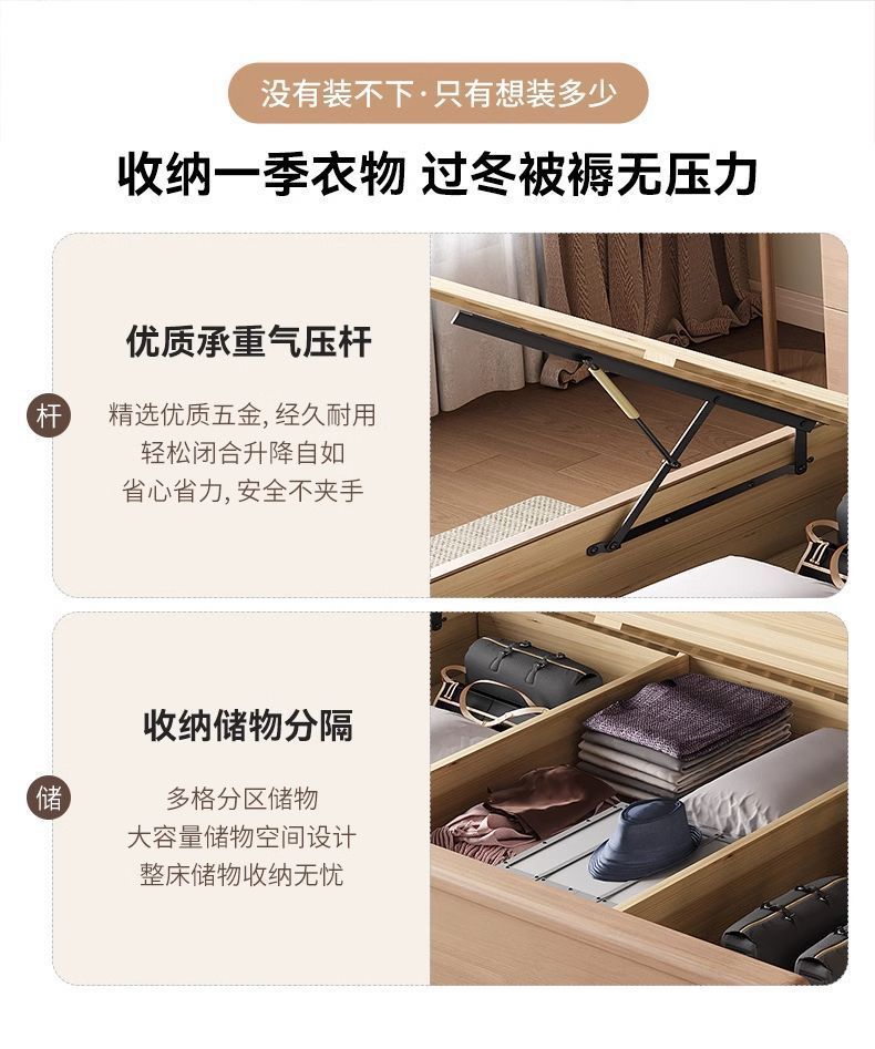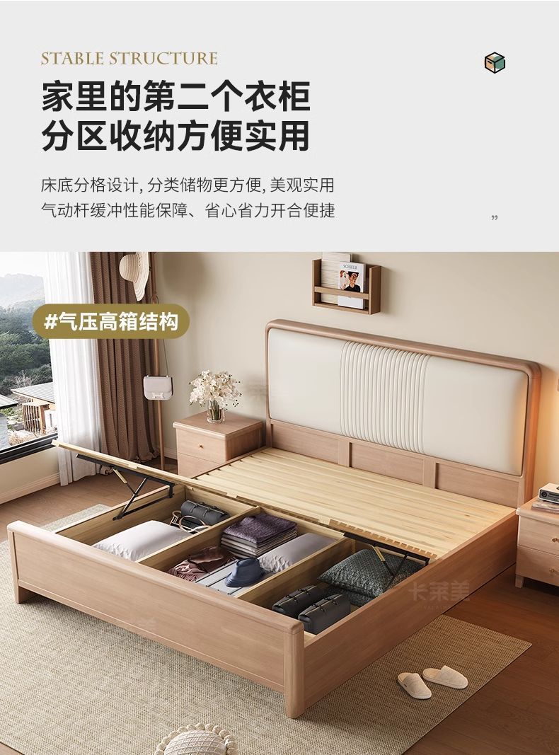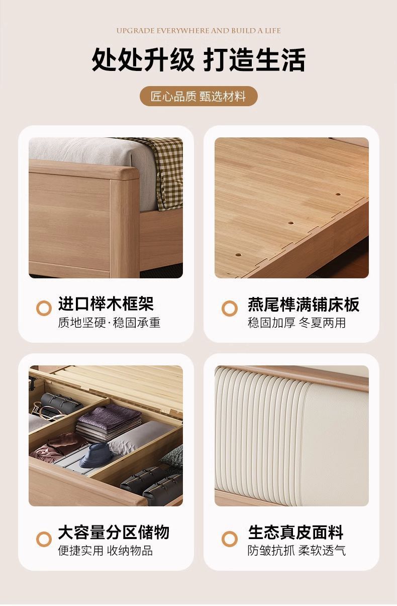 북유럽 너도밤나무 원목 침대 1.8m 소프트 패키지 모 루빙 1.5m 원목 침대 모던 심플 하이박스 수납 침대
