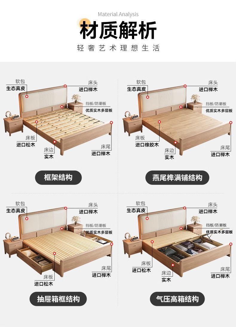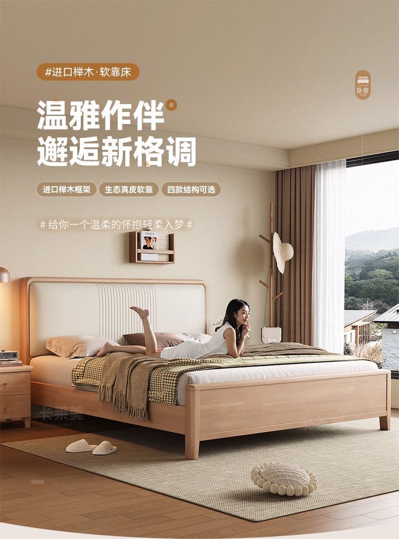 북유럽 너도밤나무 원목 침대 1.8m 소프트 패키지 모 루빙 1.5m 원목 침대 모던 심플 하이박스 수납 침대스토어 가기