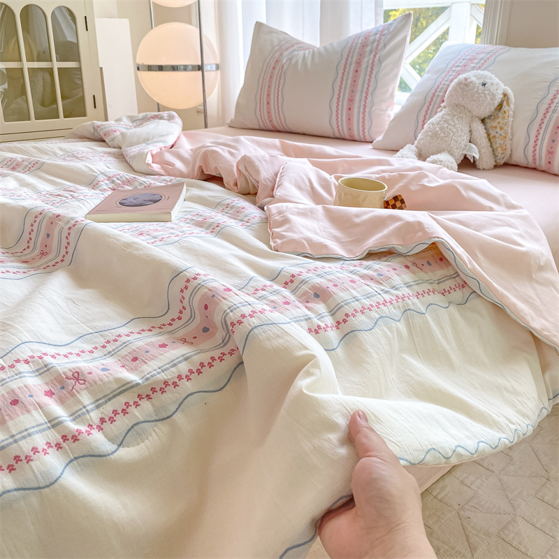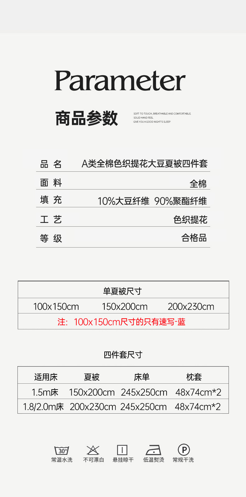 • 1.5m 침대 여름 이불 4종 세트: 여름 이불 150x200cm + 시트 245x250cm + 베갯잇 한 쌍