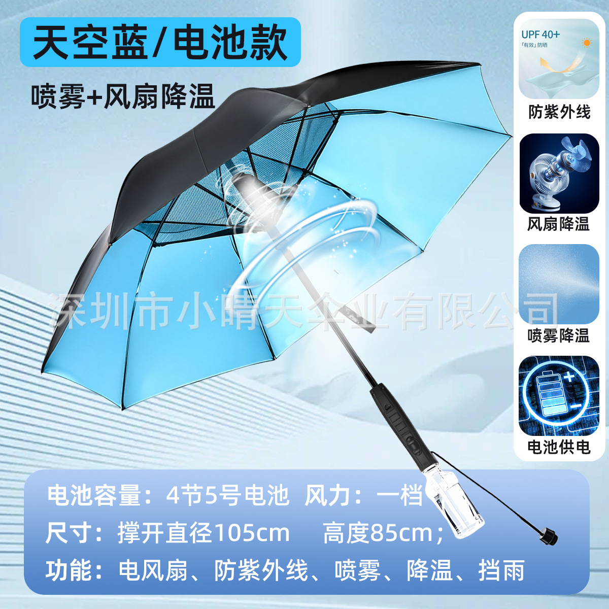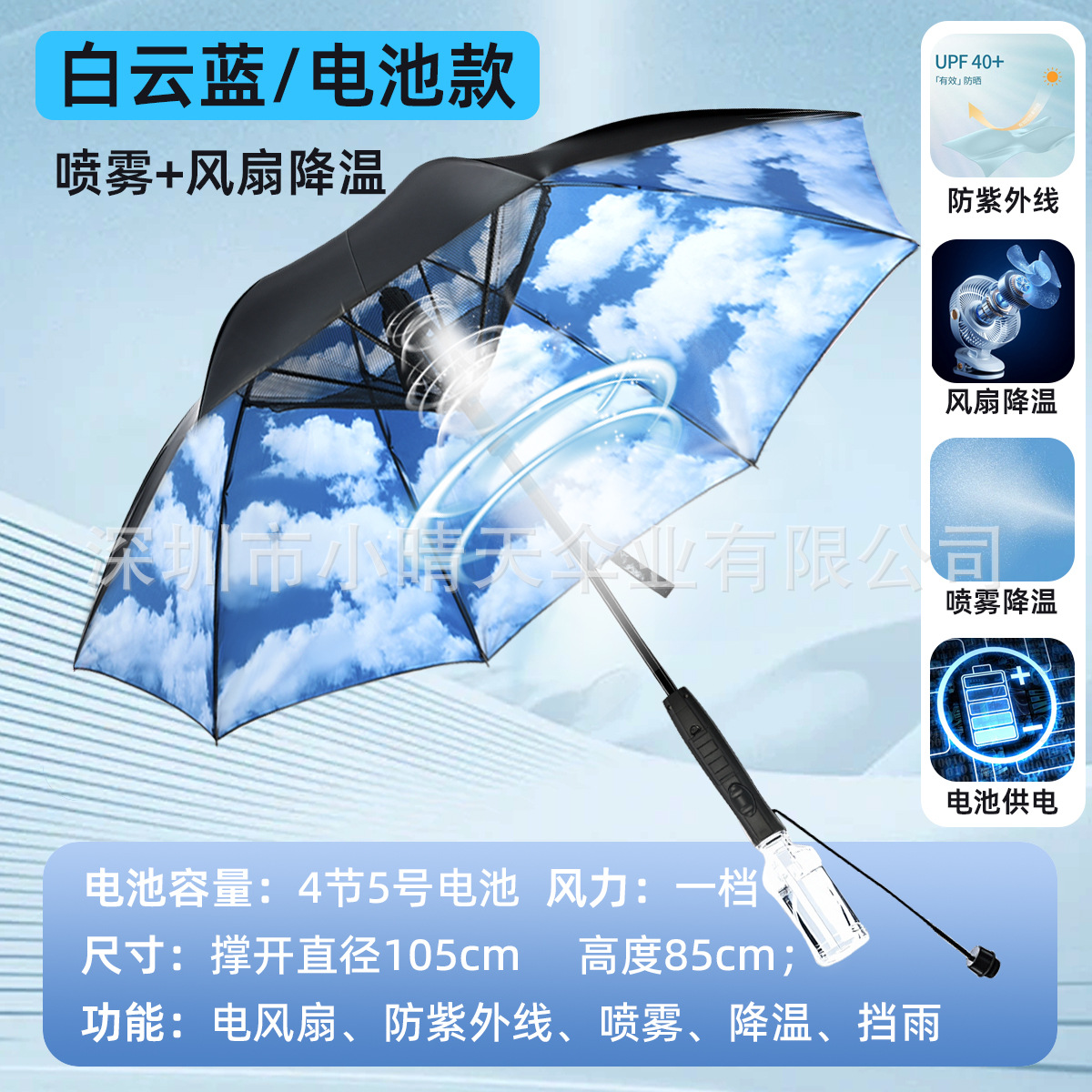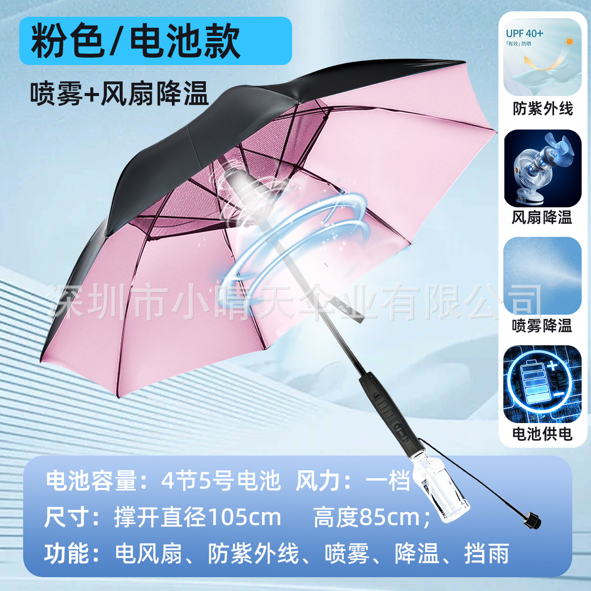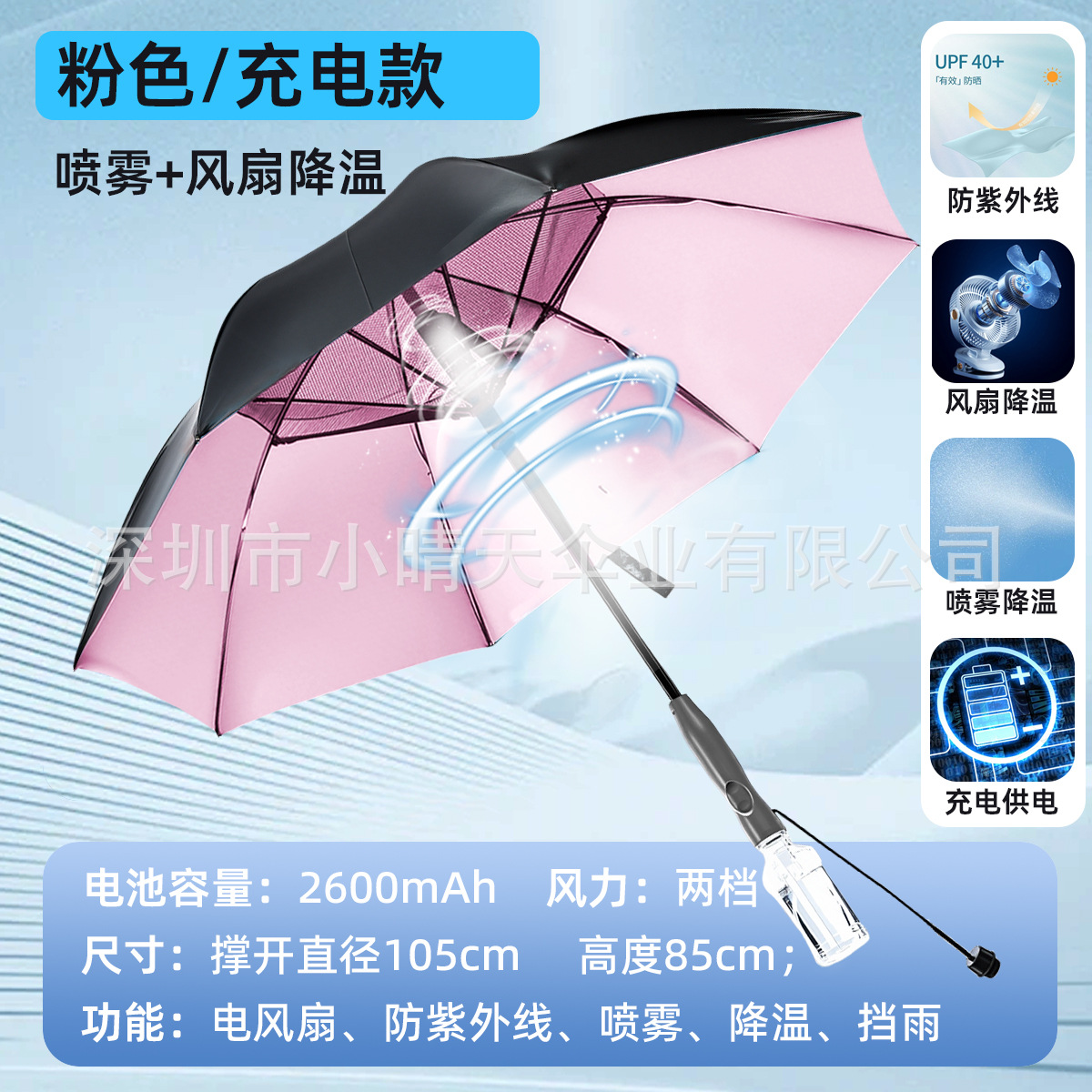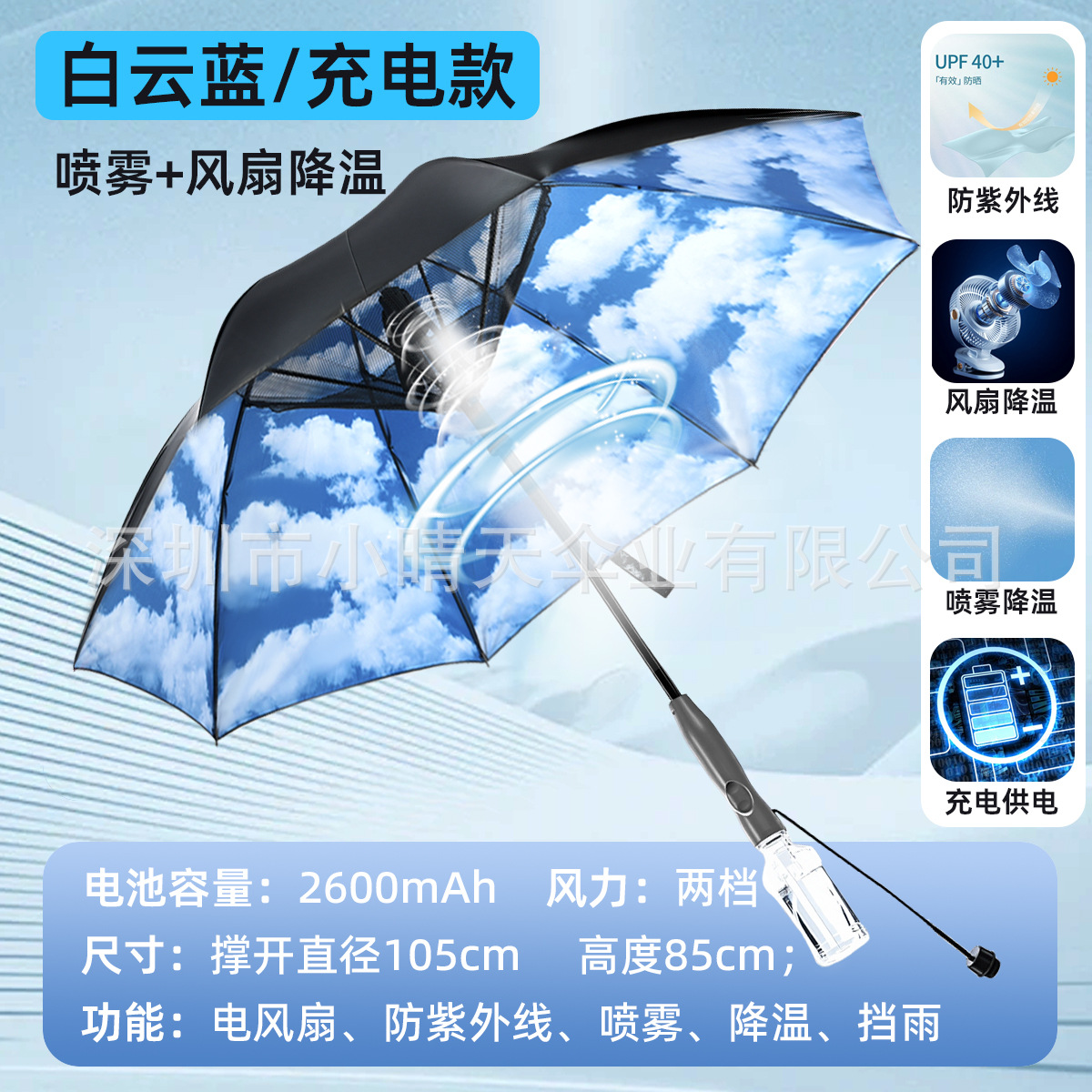 여름 팬이있는 우산 스프레이 냉각 USB 충전식 긴 손잡이 대형 파라솔 태양 보호 UV 보호스토어 가기