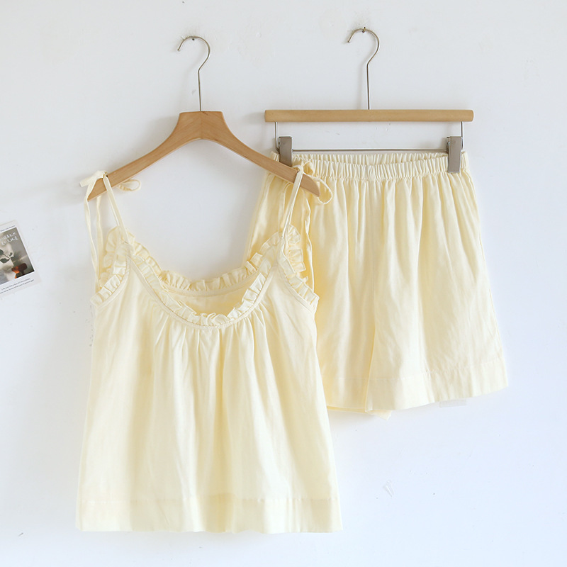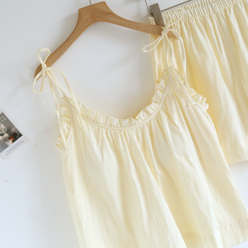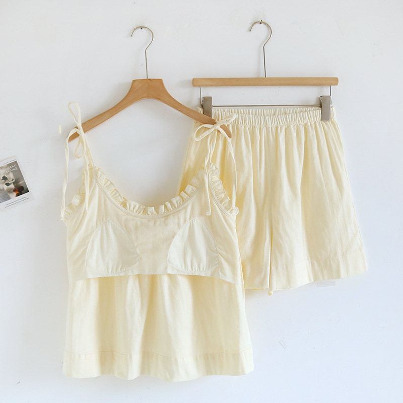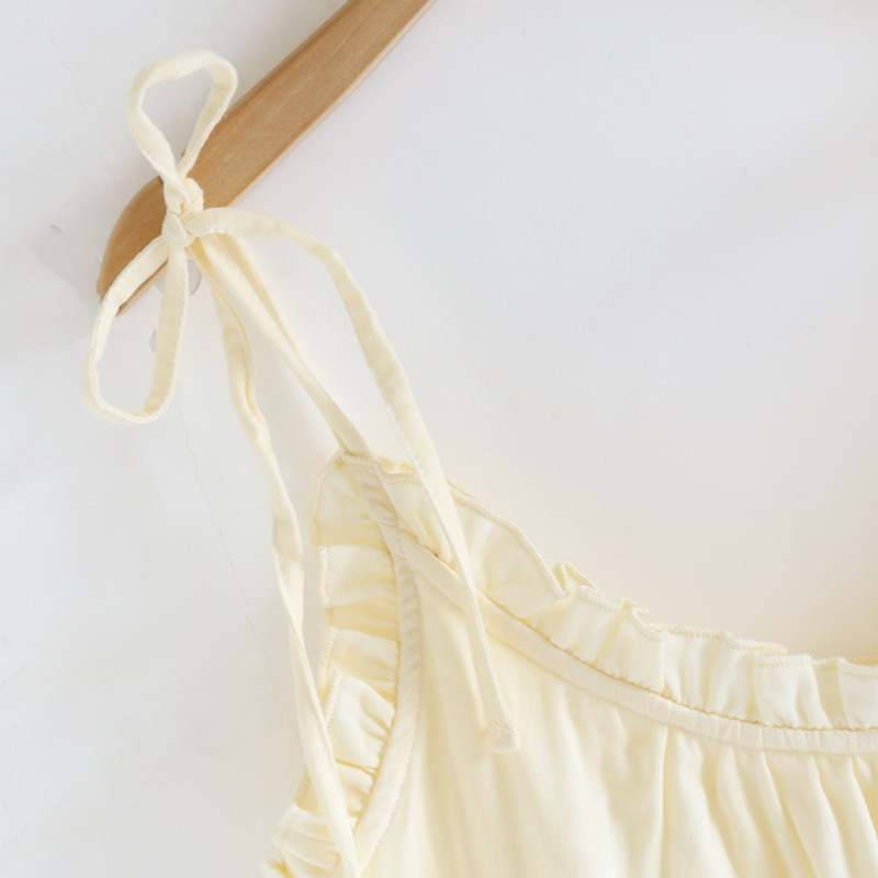 봄 여름 여성용 서스펜더 작은 나무 귓불 등이없는 루즈한 잠옷 가슴 패드 홈웨어 서스펜더 반바지는 밖에서 착용 가능스토어 가기