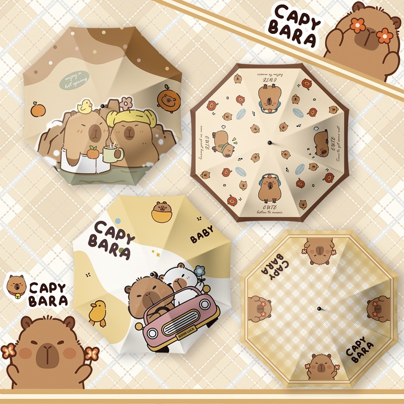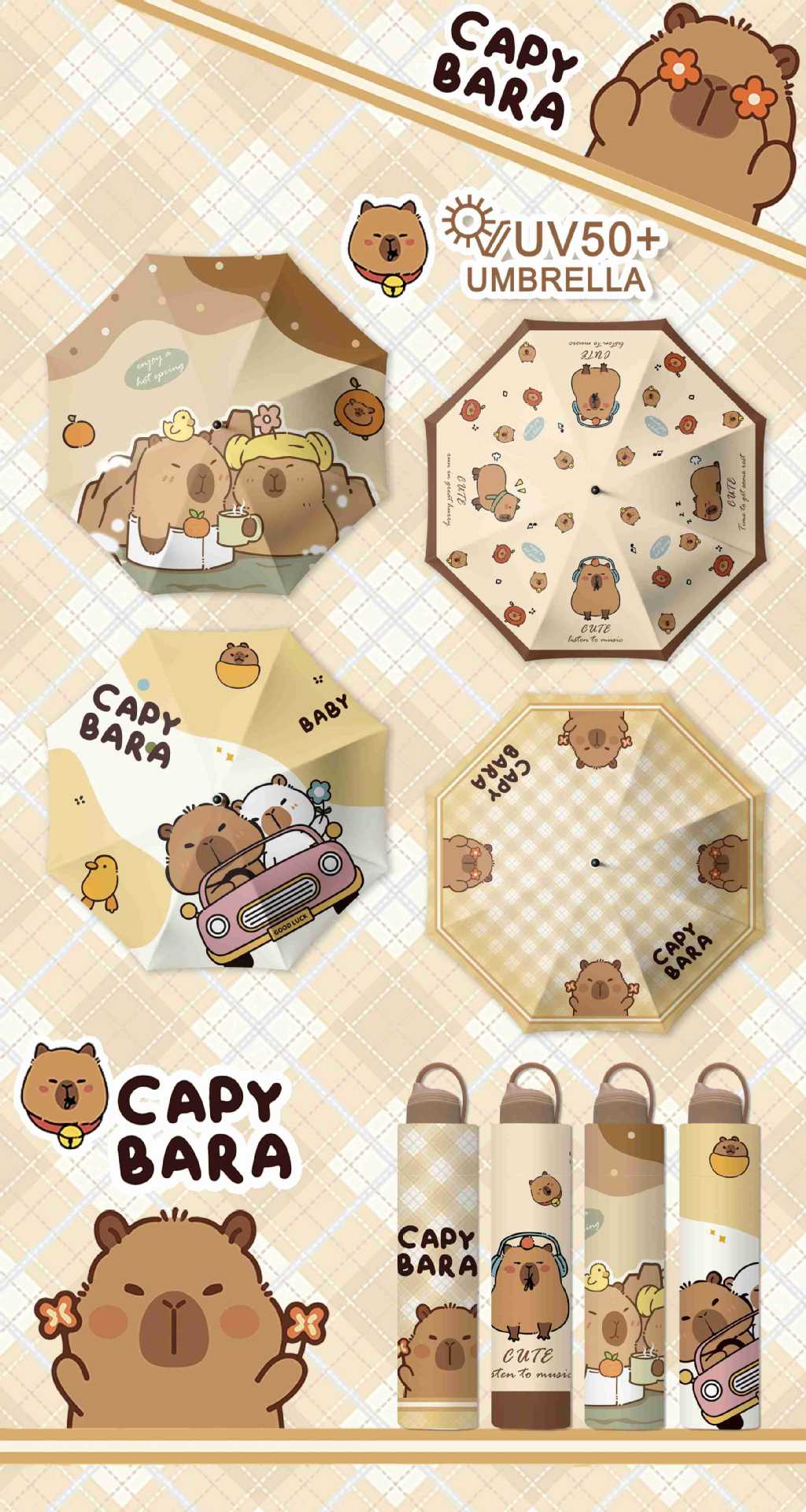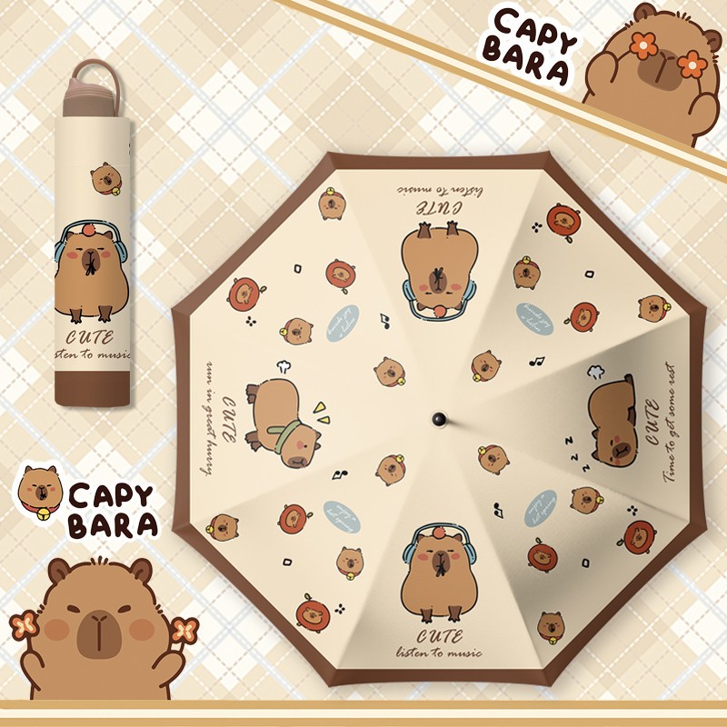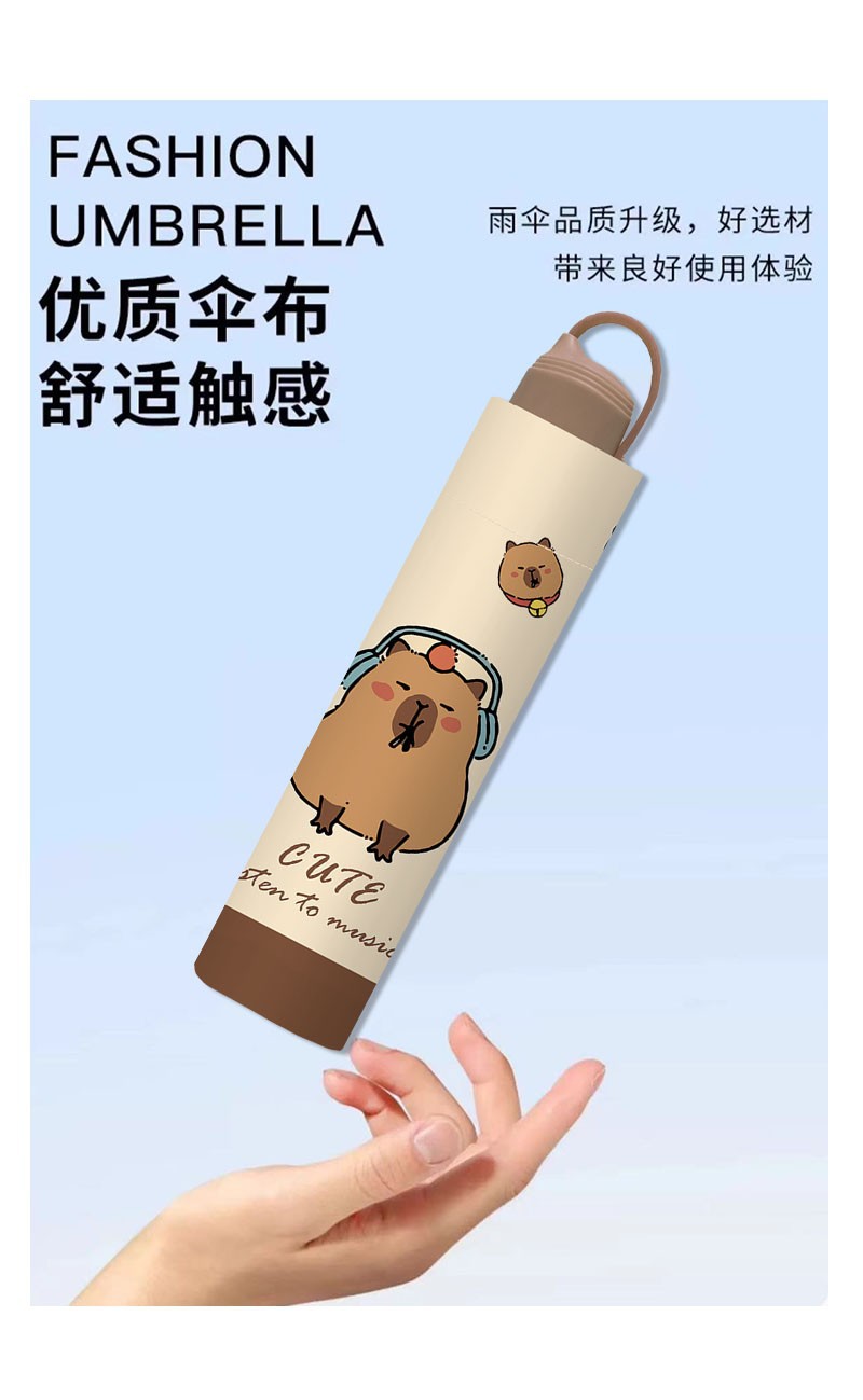 Kapibala 완전 수동 우산 태양 보호 만화 안티 UV 비 또는 빛 이중 용도 접이식 학생 파라솔