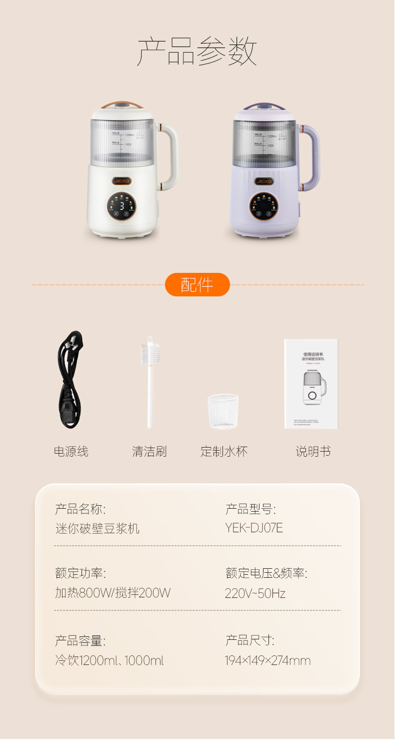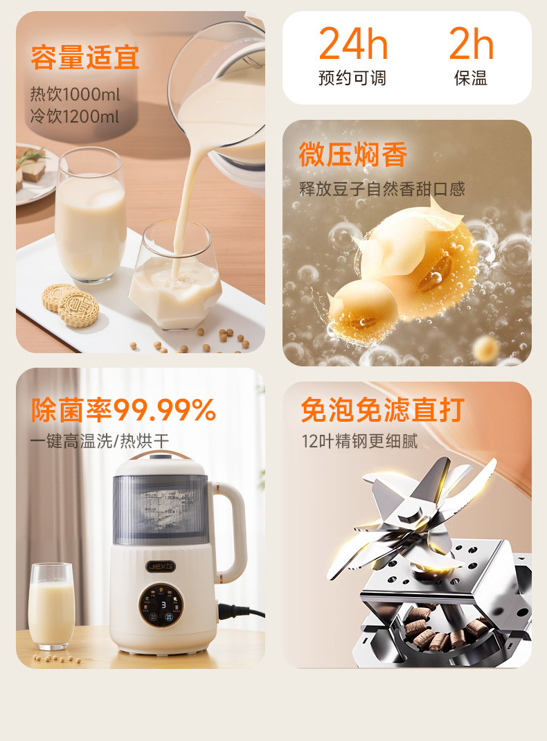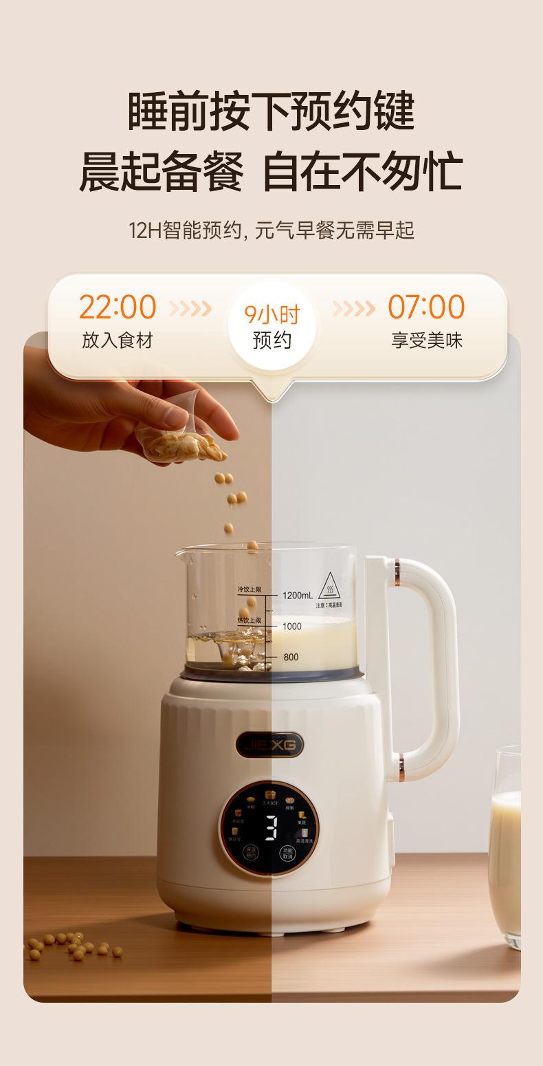 JIEXG 벽 파괴 기계 마이크로 압력 단열 가열 없음 두유 기계 가정용 완전 자동 가벼운 소리 소형 다기능 아침 식사 기계스토어 가기