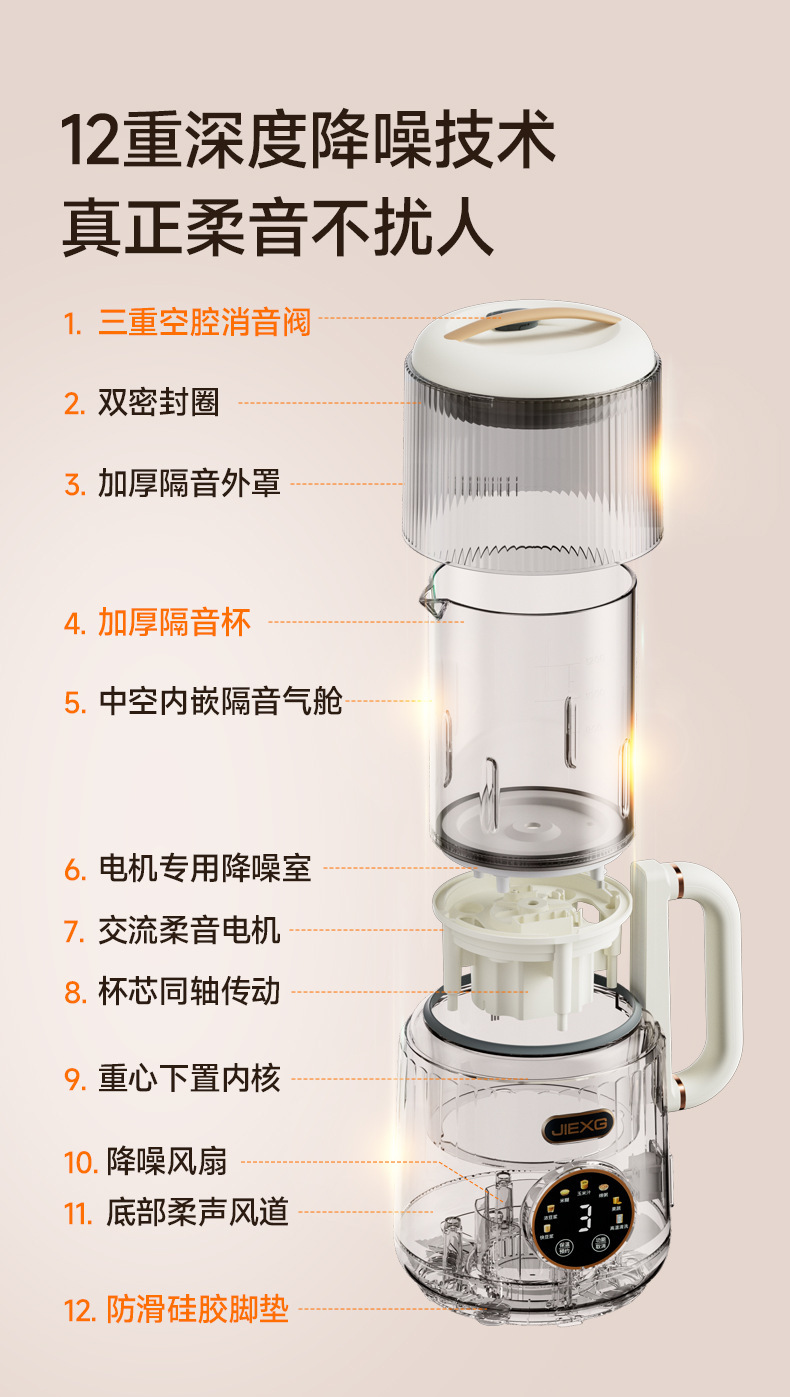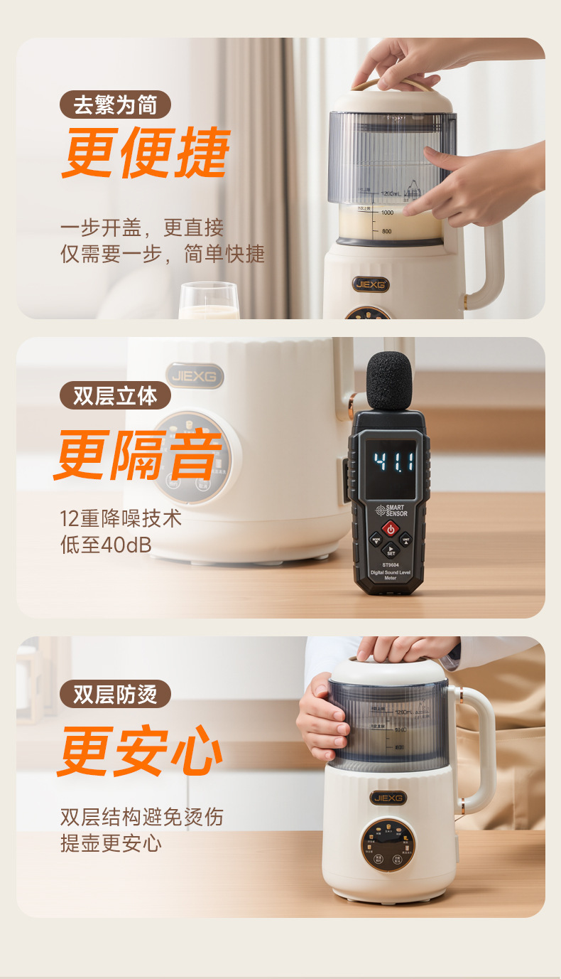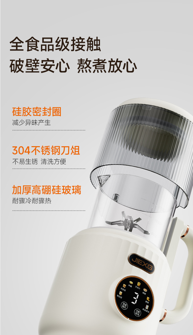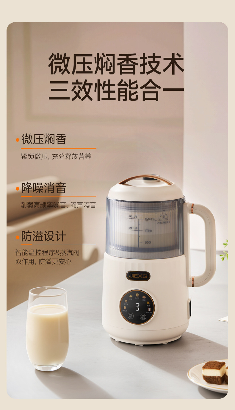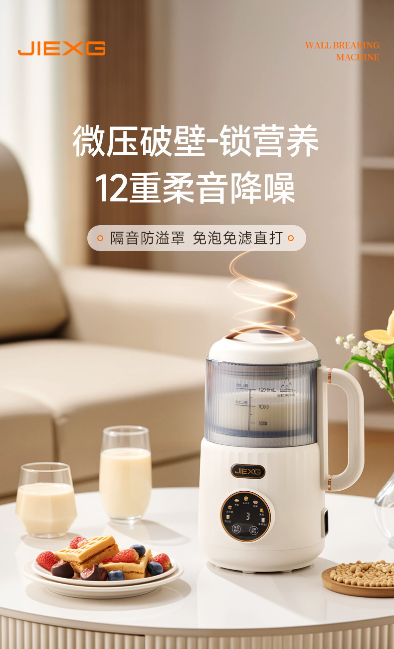 JIEXG 벽 파괴 기계 마이크로 압력 단열 가열 없음 두유 기계 가정용 완전 자동 가벼운 소리 소형 다기능 아침 식사 기계