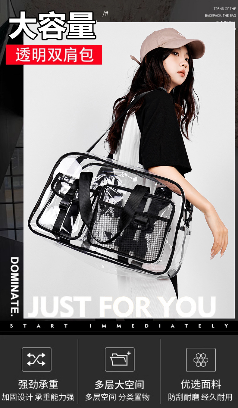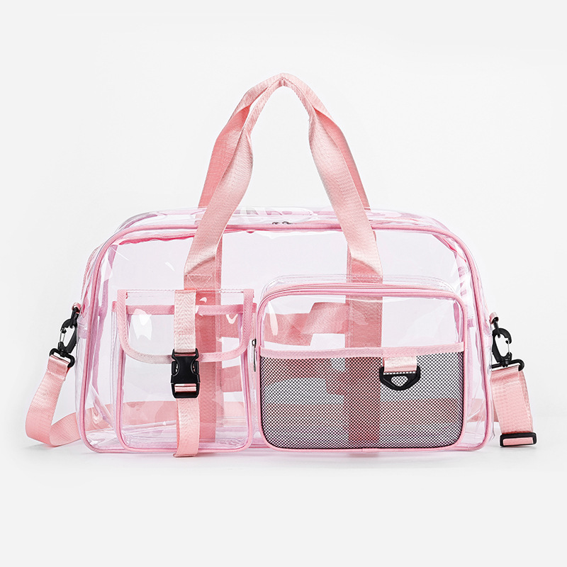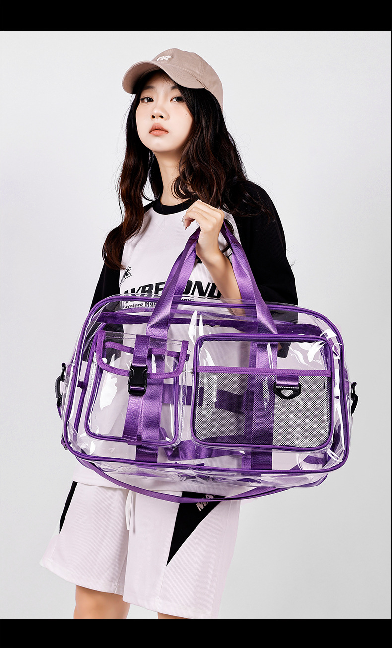 2025 새로운 투명 PVC 수영 보관 가방 휴대용 대비 색상 단거리 여행 가방 크로스 바디 대용량 피트니스 가방
