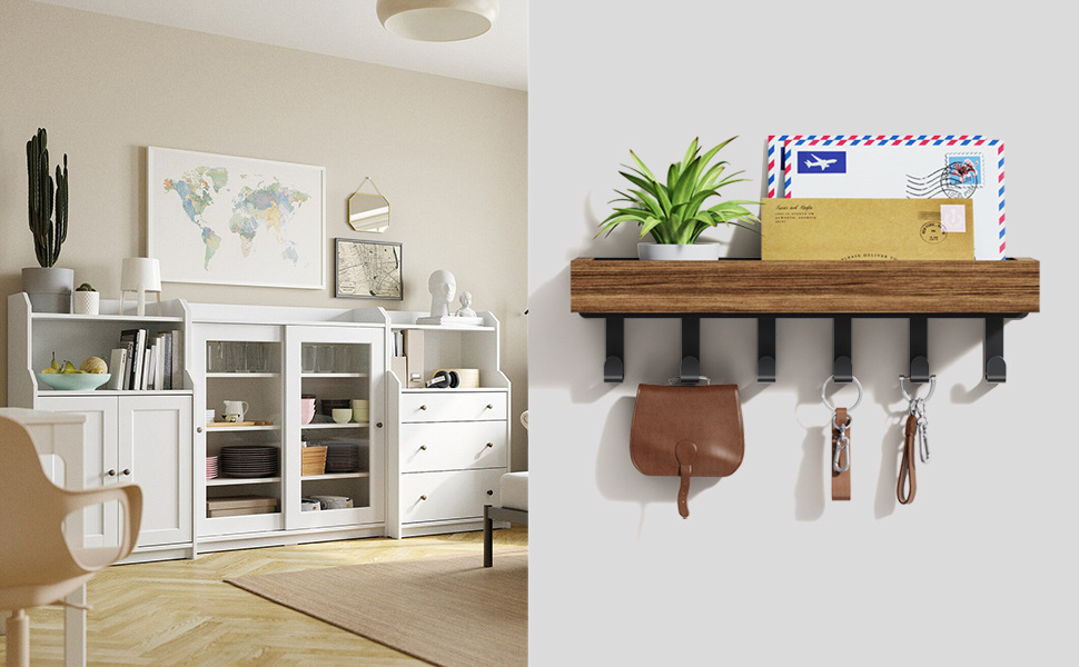 스팟 벽 선반 철 및 목재 조합 키 걸이 다목적 메일 보관함 선반 벽걸이스토어 가기