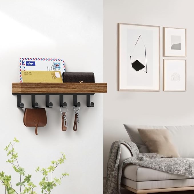 스팟 벽 선반 철 및 목재 조합 키 걸이 다목적 메일 보관함 선반 벽걸이