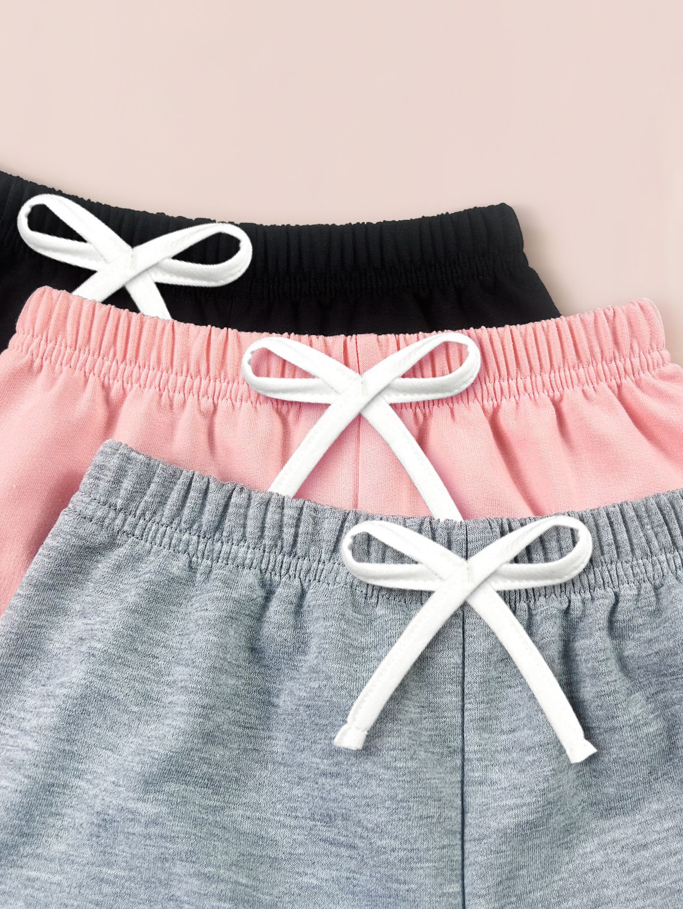 3 팩 소녀 스포츠 캐주얼 반바지 앞 리본 장식 귀여운 만화 인쇄 탄성 허리띠 여성 바지