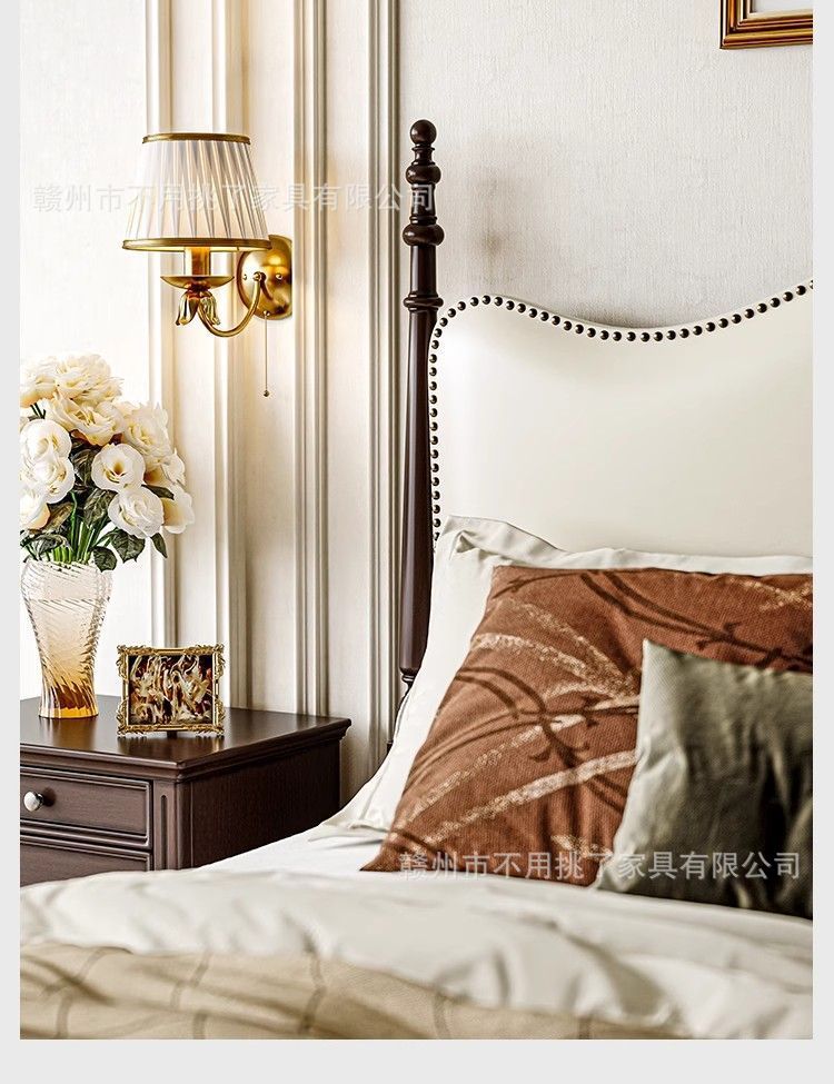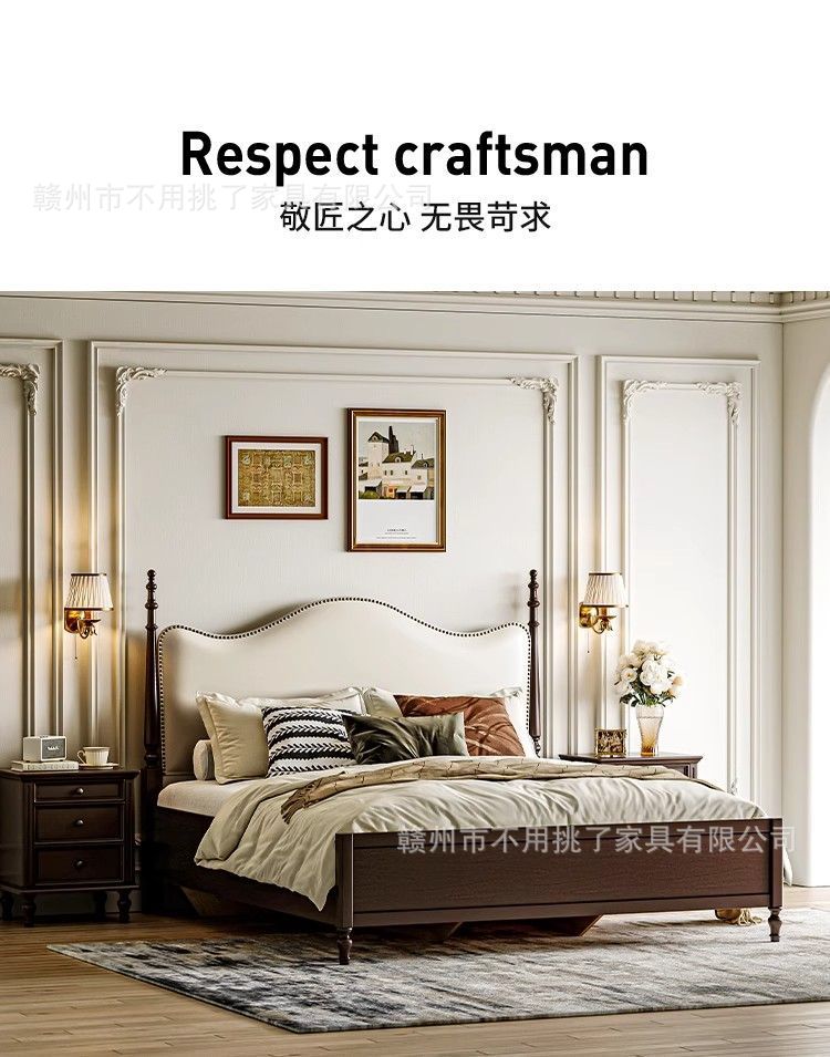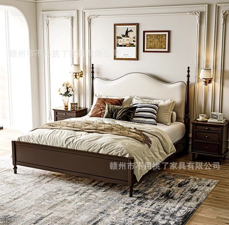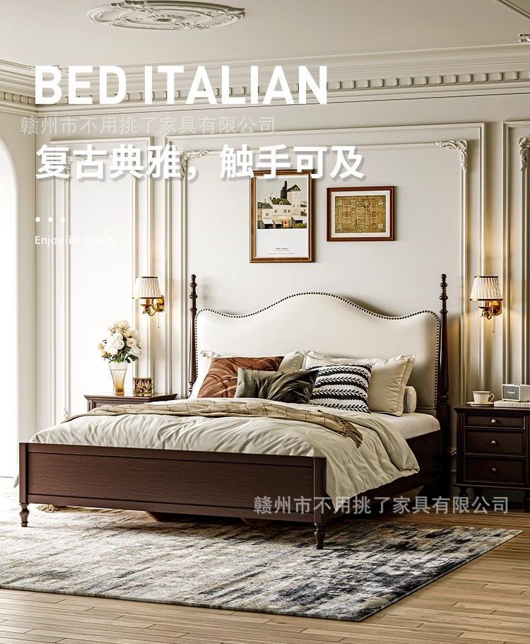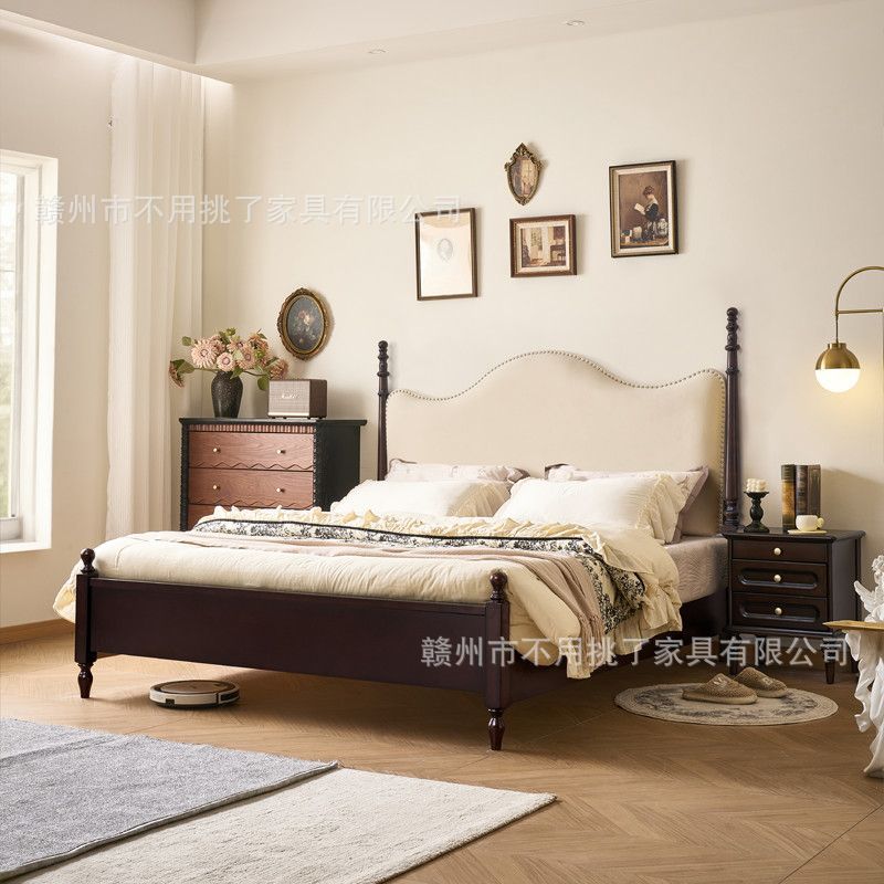 프렌치 레트로 침대, 앤티크 원목 침대 1.5m 심플 이탈리안 미니멀 침대 1.8m 더블 마스터 침실 수납 침대