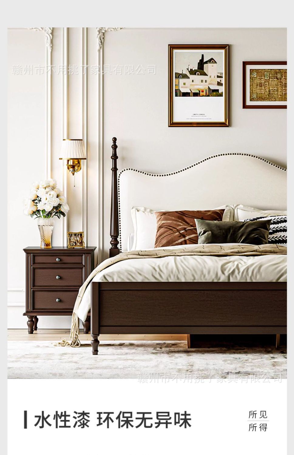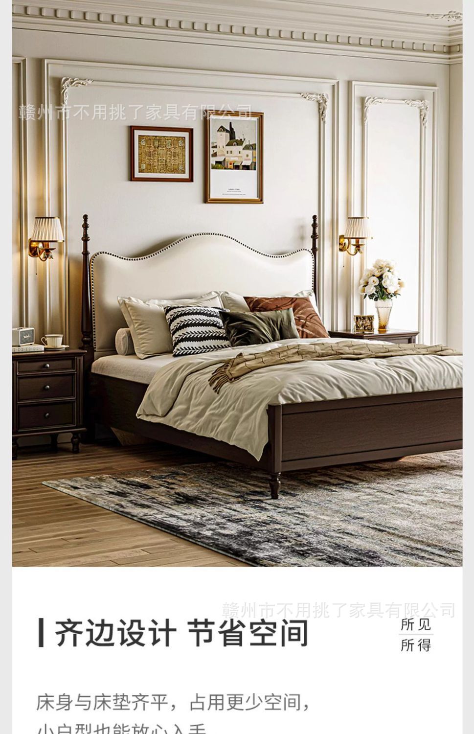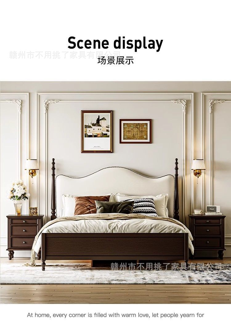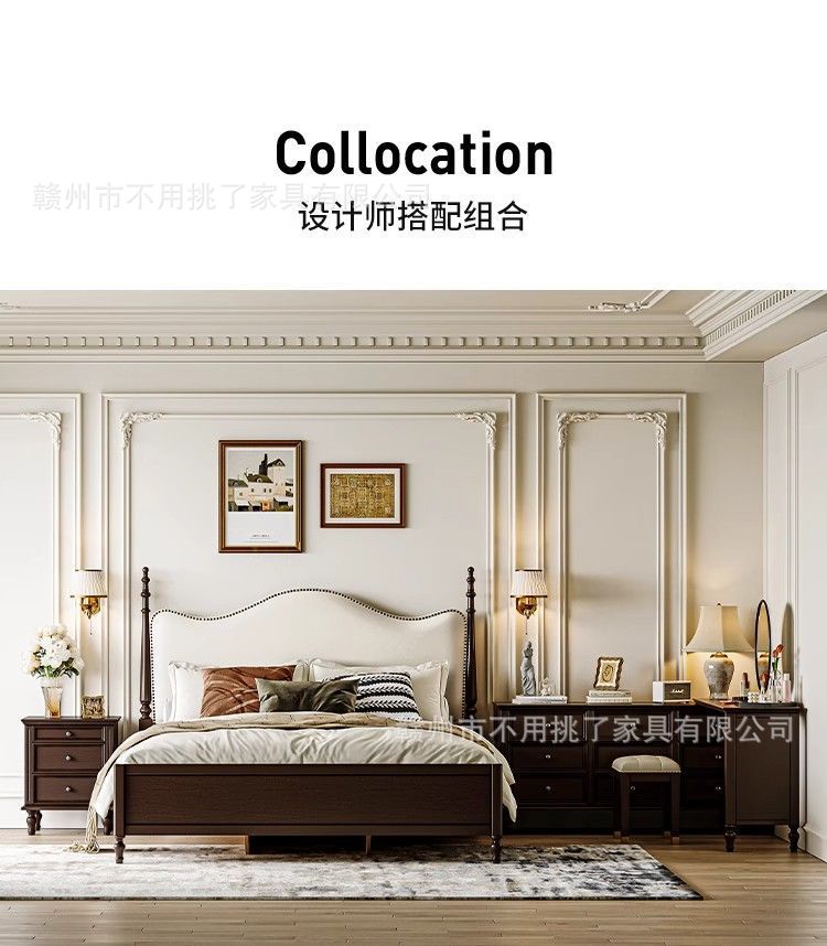 프렌치 레트로 침대, 앤티크 원목 침대 1.5m 심플 이탈리안 미니멀 침대 1.8m 더블 마스터 침실 수납 침대스토어 가기