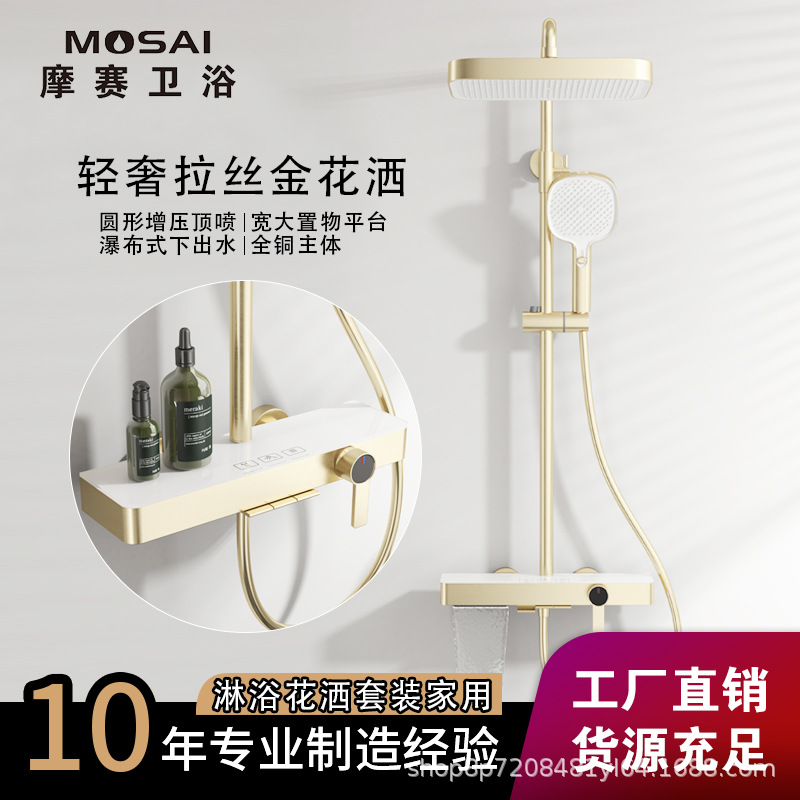 독일 MOSAI 가압식 전체 구리 샤워 키트 가정용 석회 방지 절수 고급 샤워 3 기능 피아노