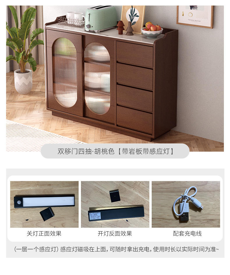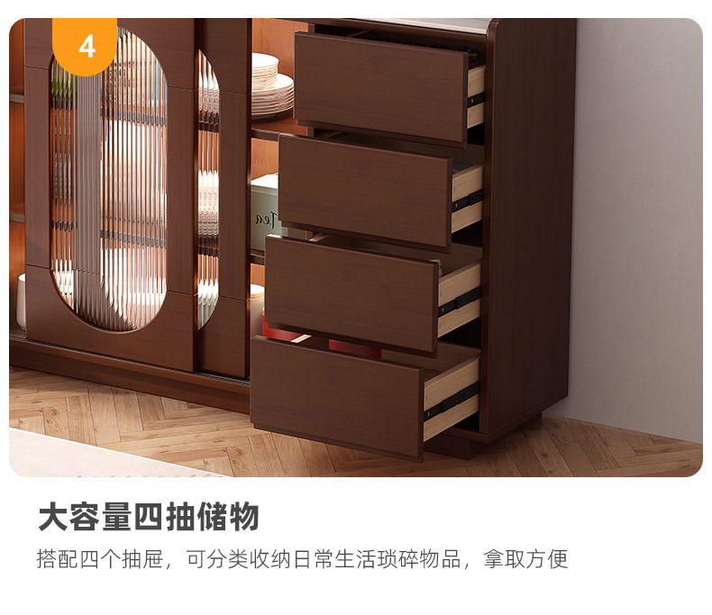 • 120*35*86cm 이중 미닫이문 4단 서랍 [원목 표면]