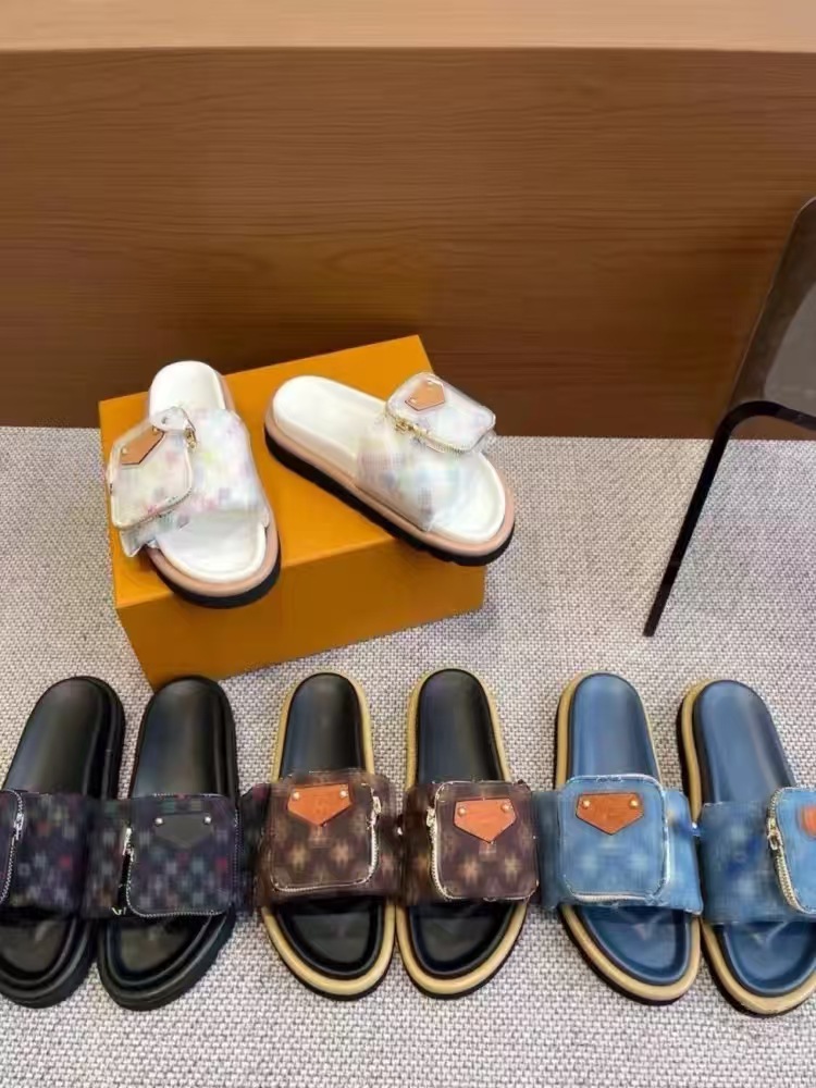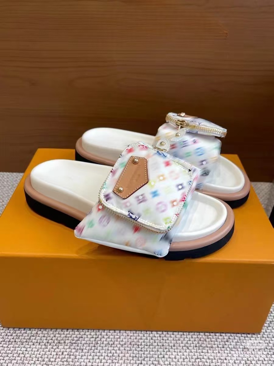 GAUAI~무라카미 류 공동 브랜드 화이트 삼색 여성 벨크로 두꺼운 밑창 슬리퍼 여름 가방 플랫 밑창 커플 샌들