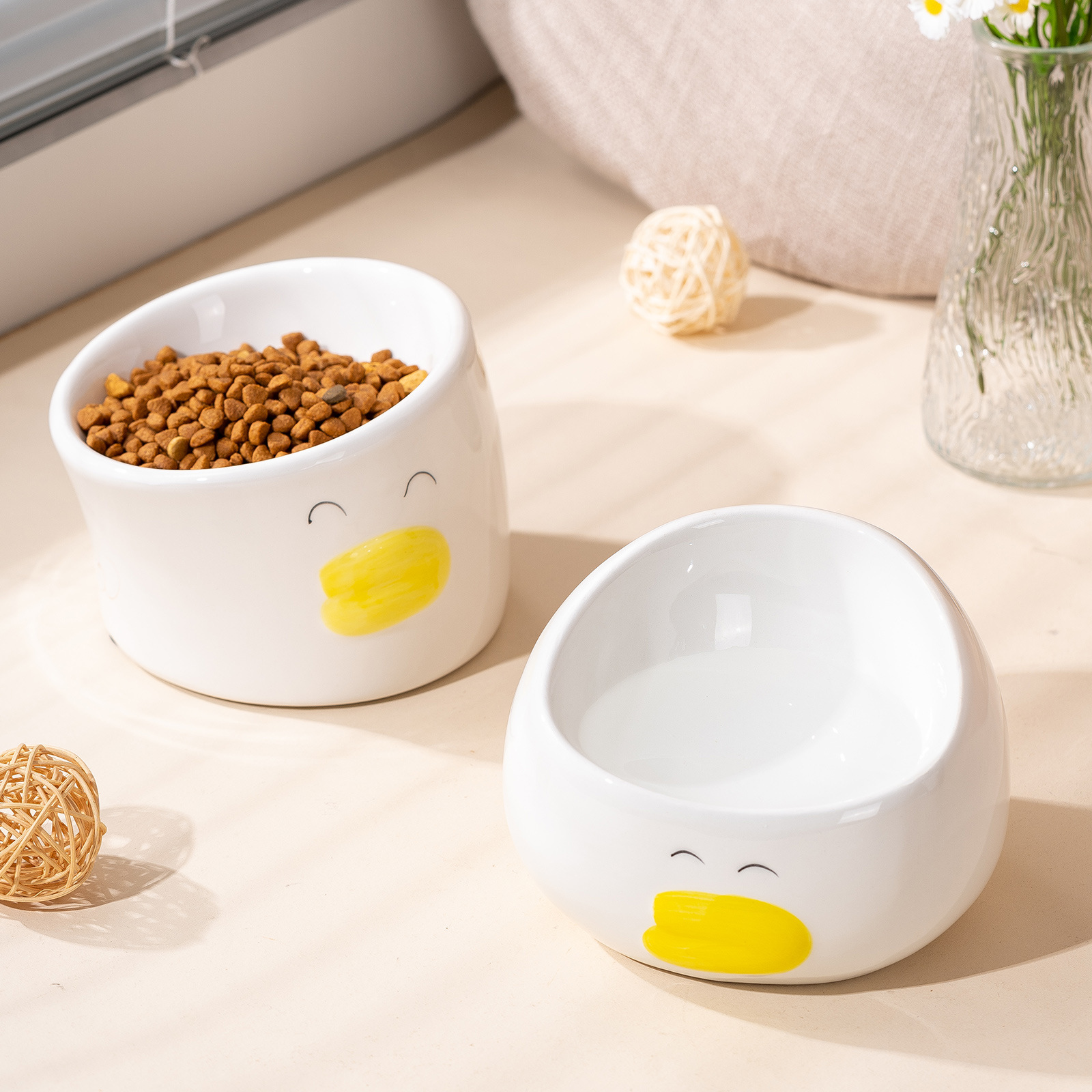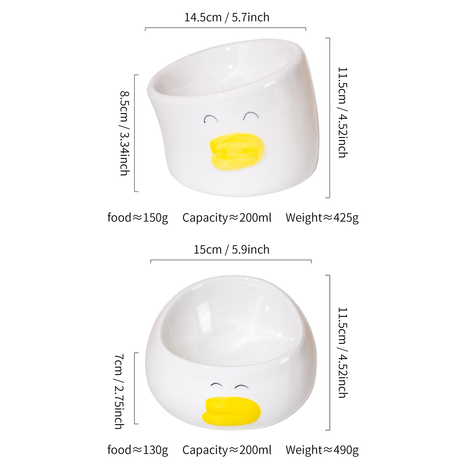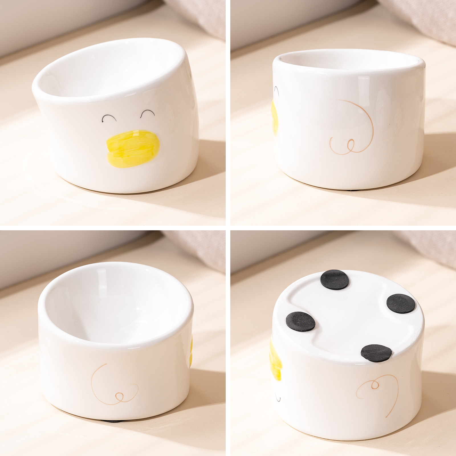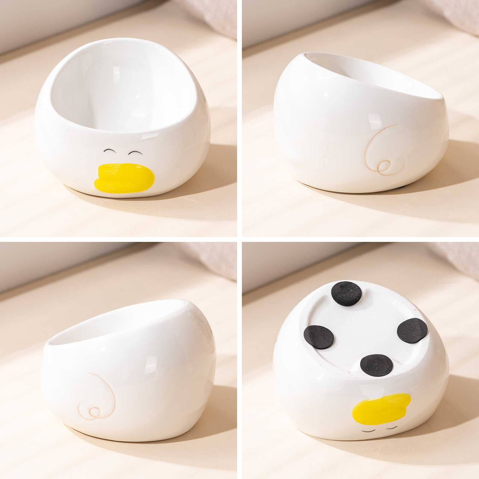 세라믹 고양이 그릇, 작은 닭고기 고양이 그릇, 경사진 입구, 넘어짐 방지 개밥 그릇, 검은 턱 방지, 창의적인 고양이 밥과 물 그릇