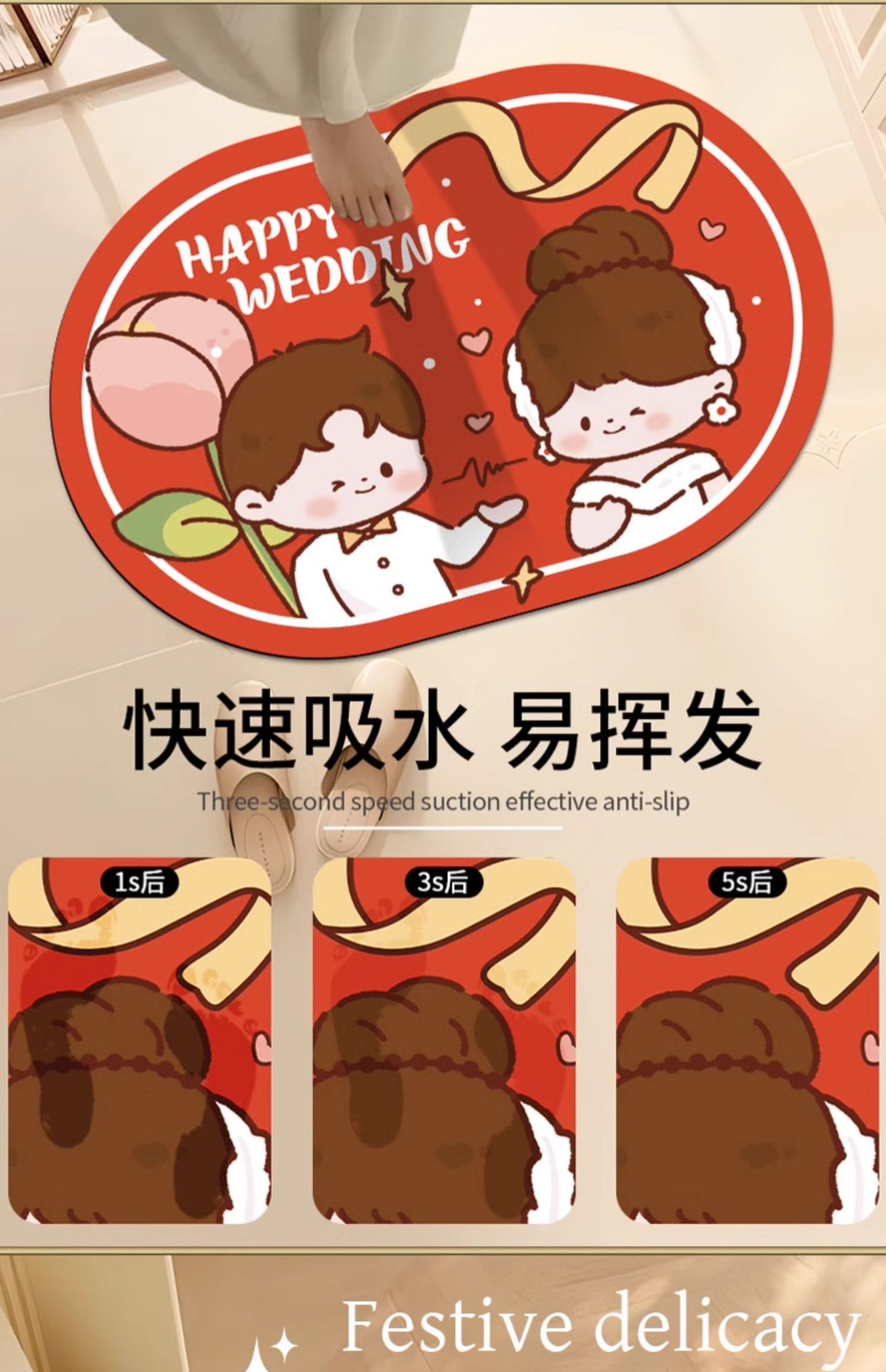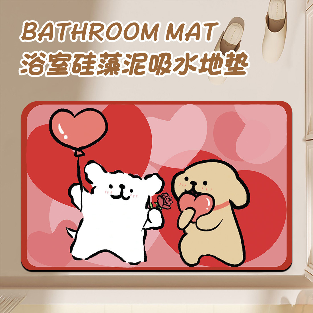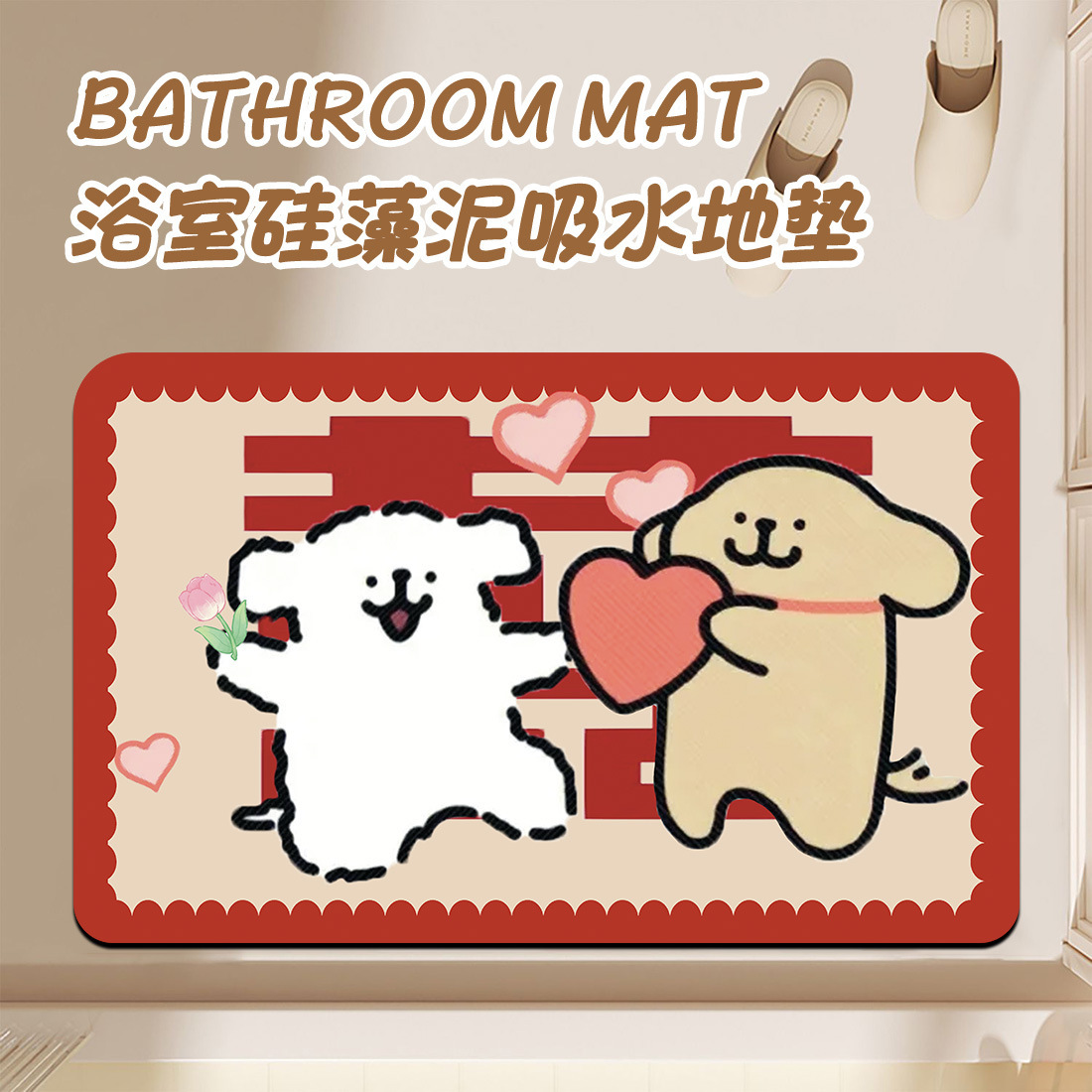 신혼 축하 욕실 라인 강아지 웨딩 매트 규조토 미끄럼 방지 흡수 침실 장식 발매트