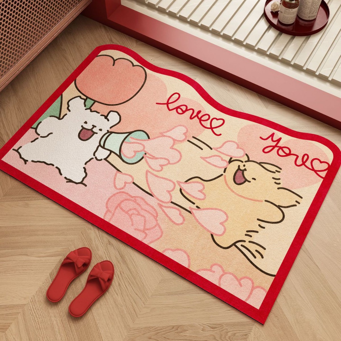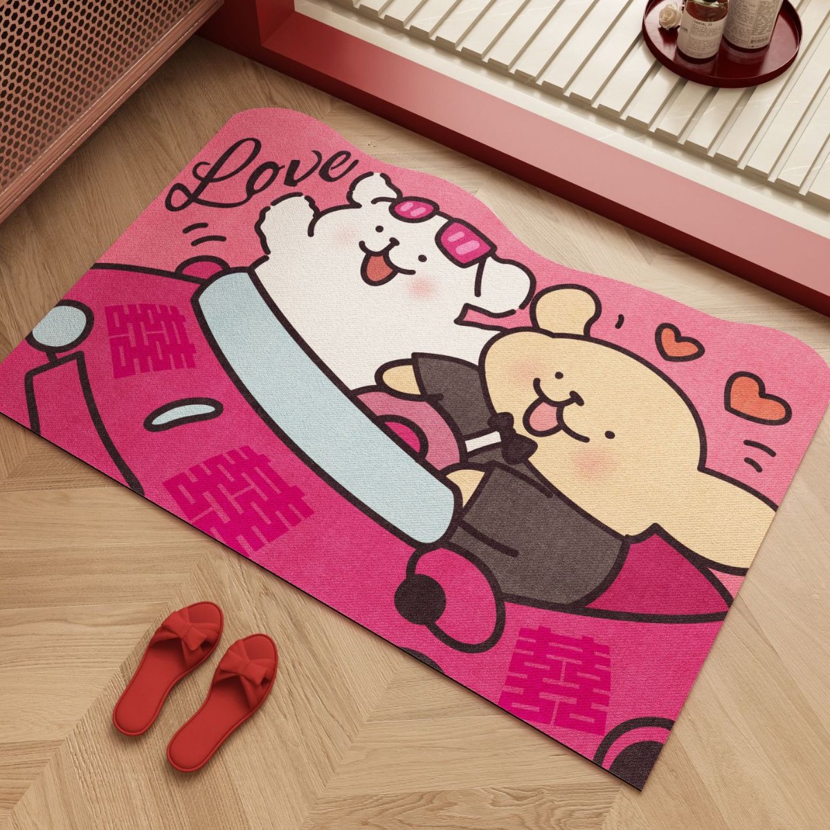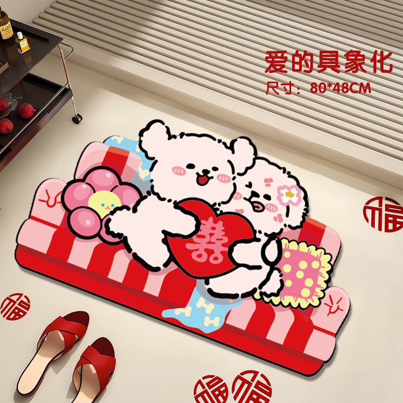 신혼 축하 욕실 라인 강아지 웨딩 매트 규조토 미끄럼 방지 흡수 침실 장식 발매트스토어 가기