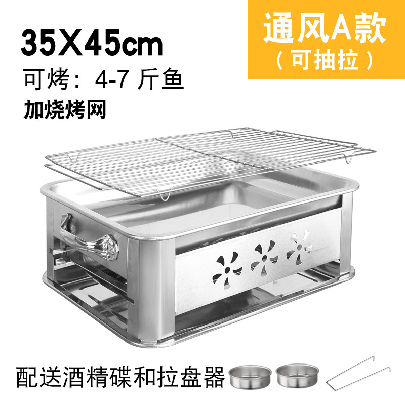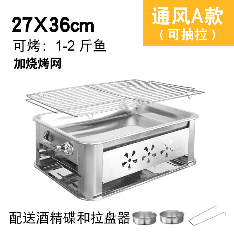 Wanzhou 생선 구이 접시 특수 냄비 직사각형 가정용 스테인레스 스틸 생선 구이 오븐 상업용 숯불 바베큐 오븐 알코올 트레이스토어 가기