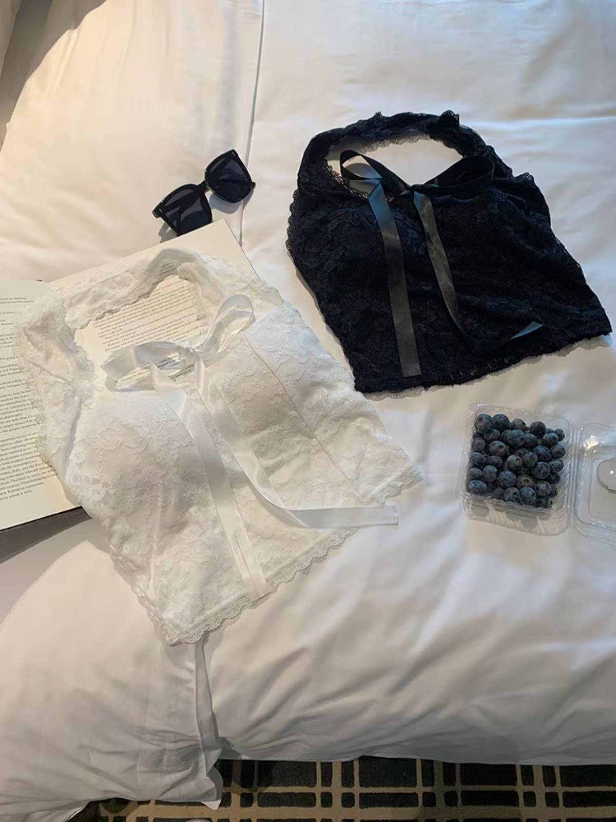 여름에 매듭이 달린 여성용 순수한 욕망 레이스 홀터넥 조끼, 아름다운 등, 달콤하고 매운 소녀, 내부 및 외부 착용, 가슴 패드 탑스토어 가기