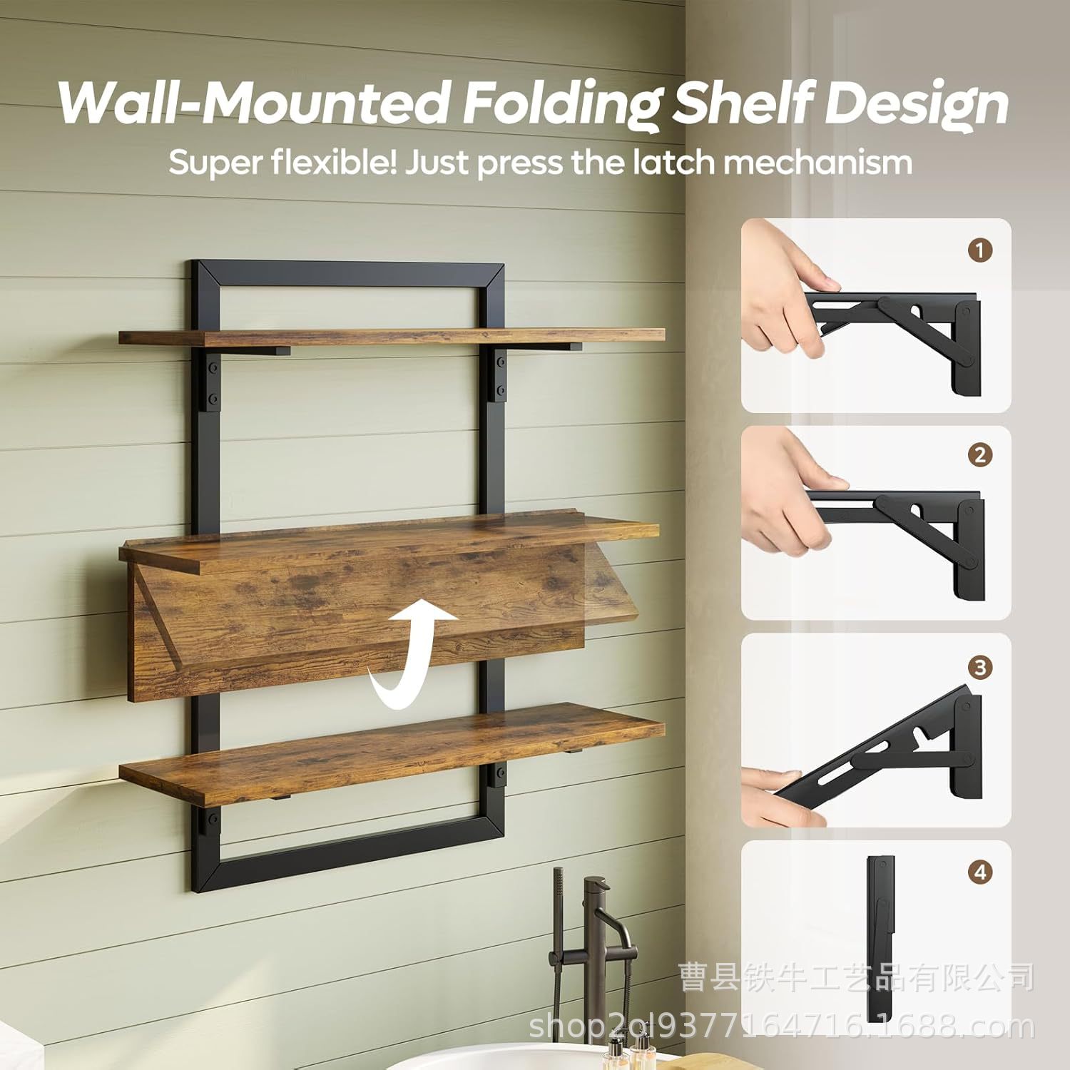 욕실 및 거실용 국경 간 철제 벽걸이형 수납 선반 접이식 나무 판자 서스펜션 선반 다기능 벽 플로팅 선반