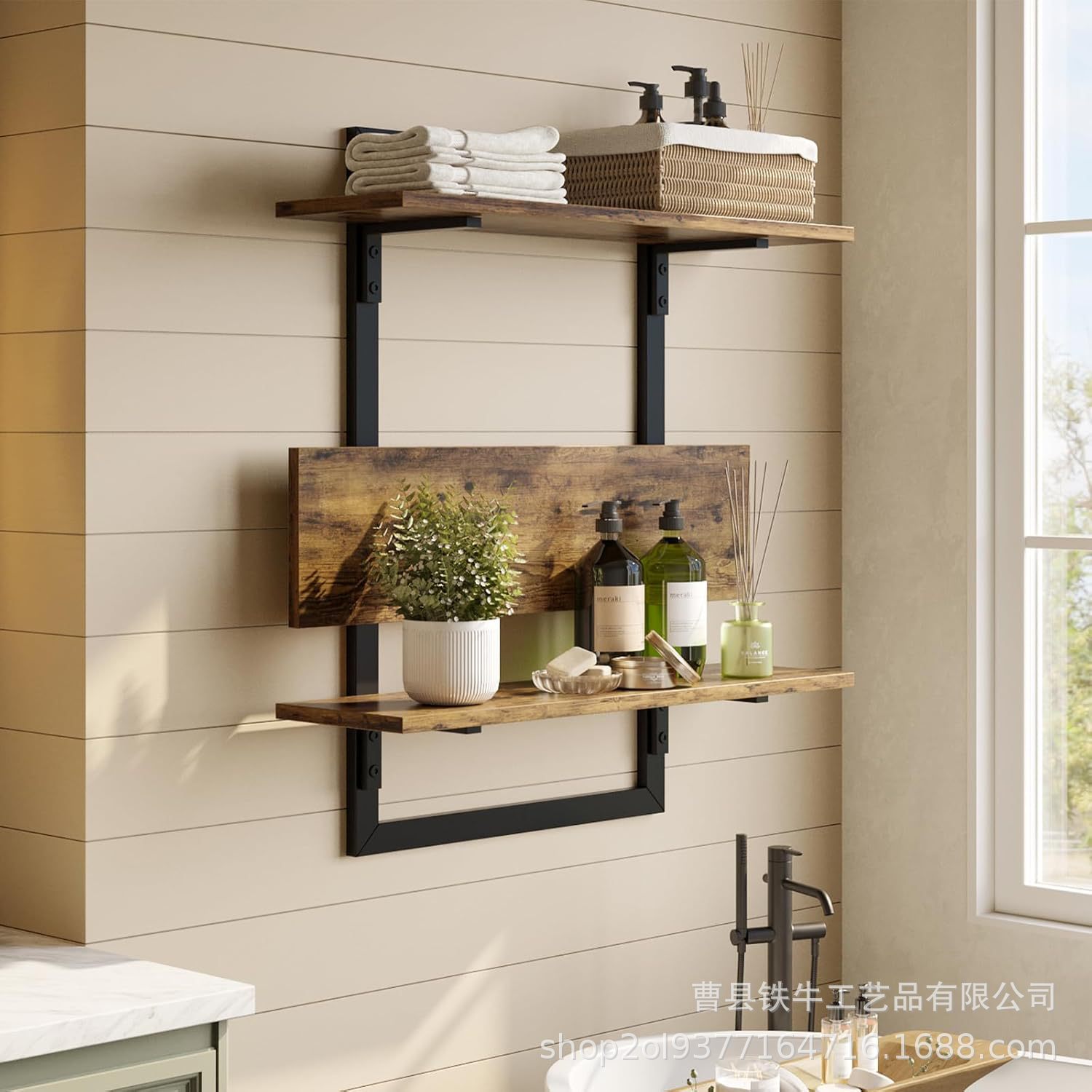 욕실 및 거실용 국경 간 철제 벽걸이형 수납 선반 접이식 나무 판자 서스펜션 선반 다기능 벽 플로팅 선반스토어 가기
