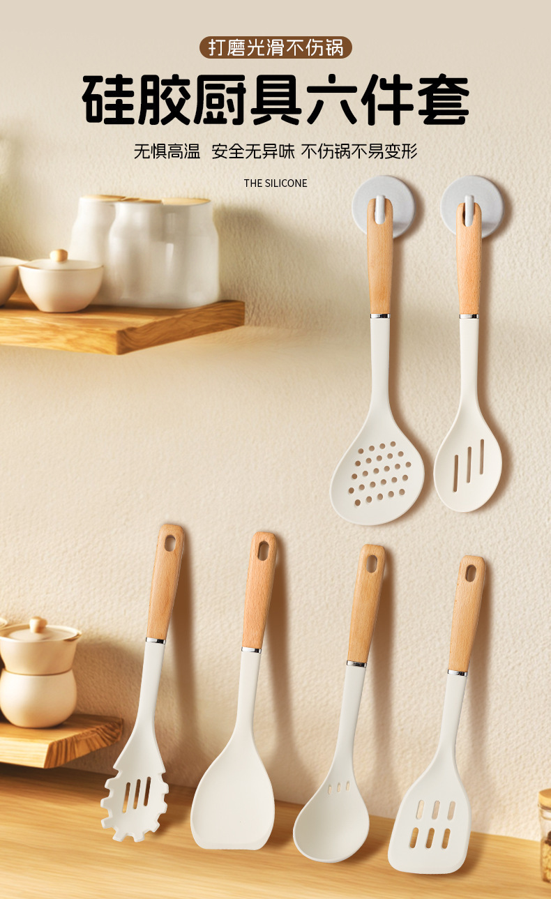 붙지 않는 실리콘 수프 스푼, 요리용 주걱, 고온 방지 가정용 식품 등급 프라이팬 스푼, 실리콘 주걱, 주방 용품, 국경 간 전용 공급