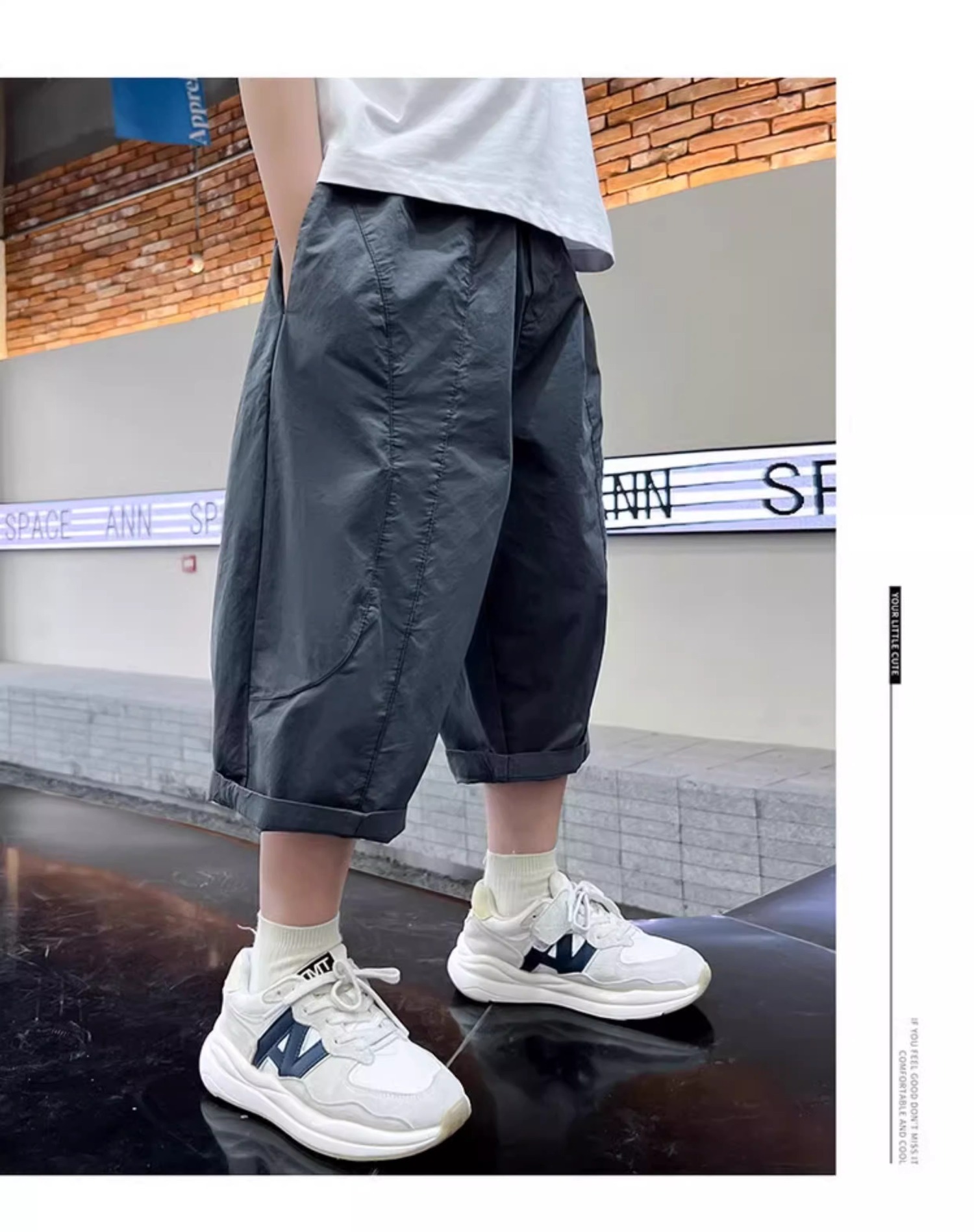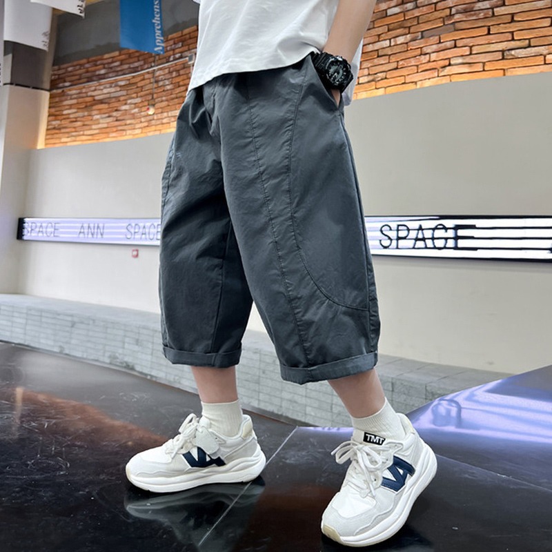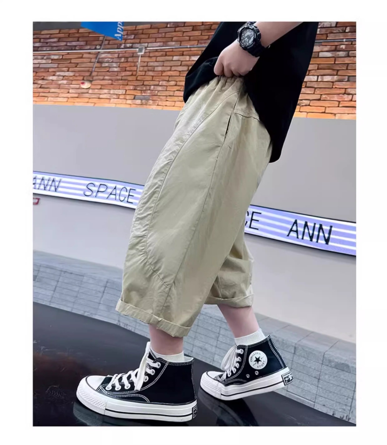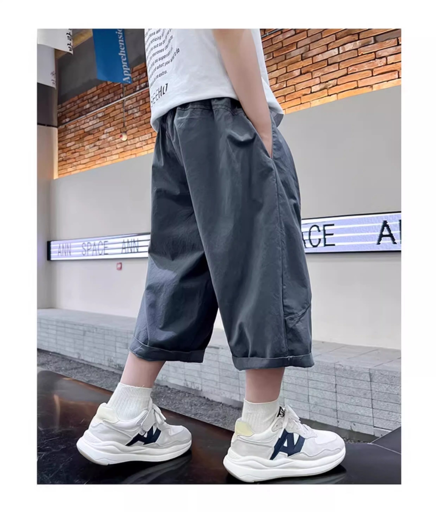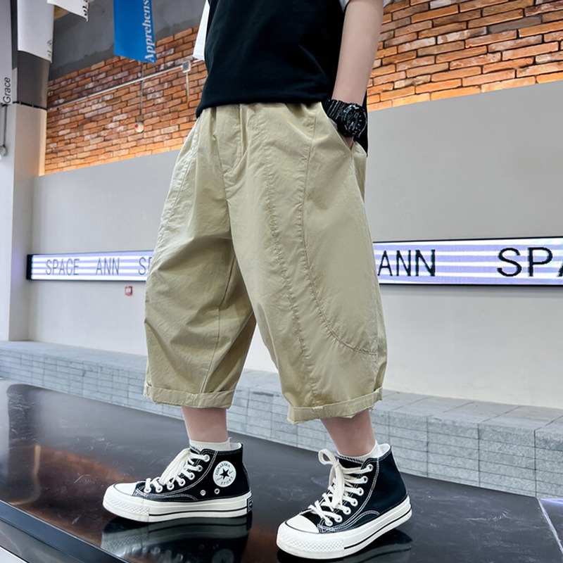 남아용 여름 루즈 캐주얼 크롭 팬츠, 와이드 레그 반바지, 주름 디자인, 스포츠 니치, 중대형 어린이를 위한 다용도 스타일스토어 가기