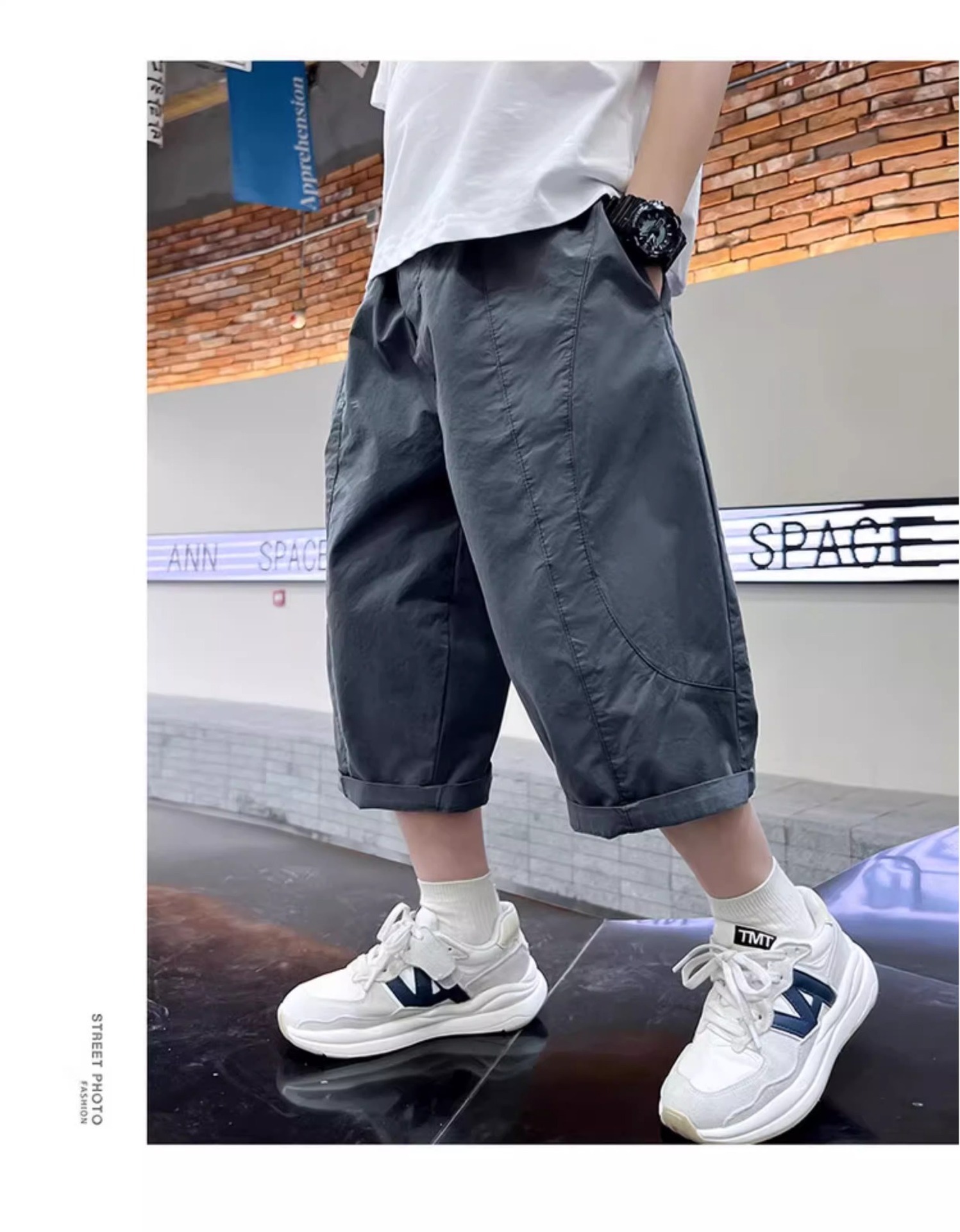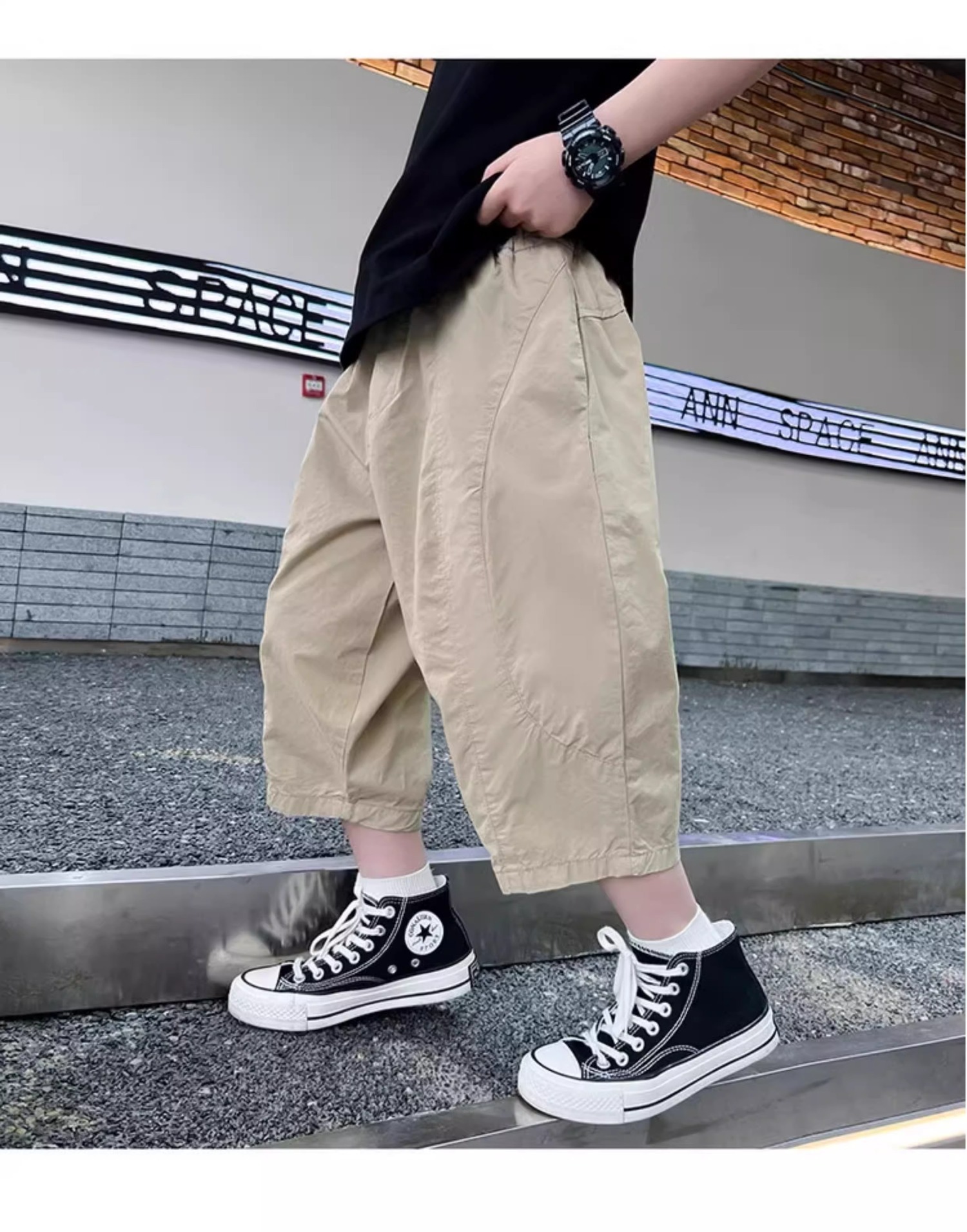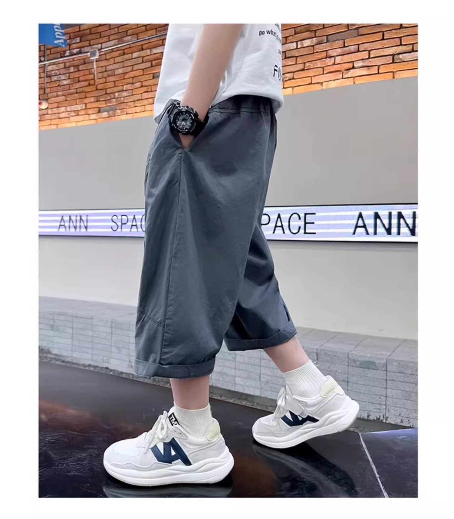 남아용 여름 루즈 캐주얼 크롭 팬츠, 와이드 레그 반바지, 주름 디자인, 스포츠 니치, 중대형 어린이를 위한 다용도 스타일스토어 가기