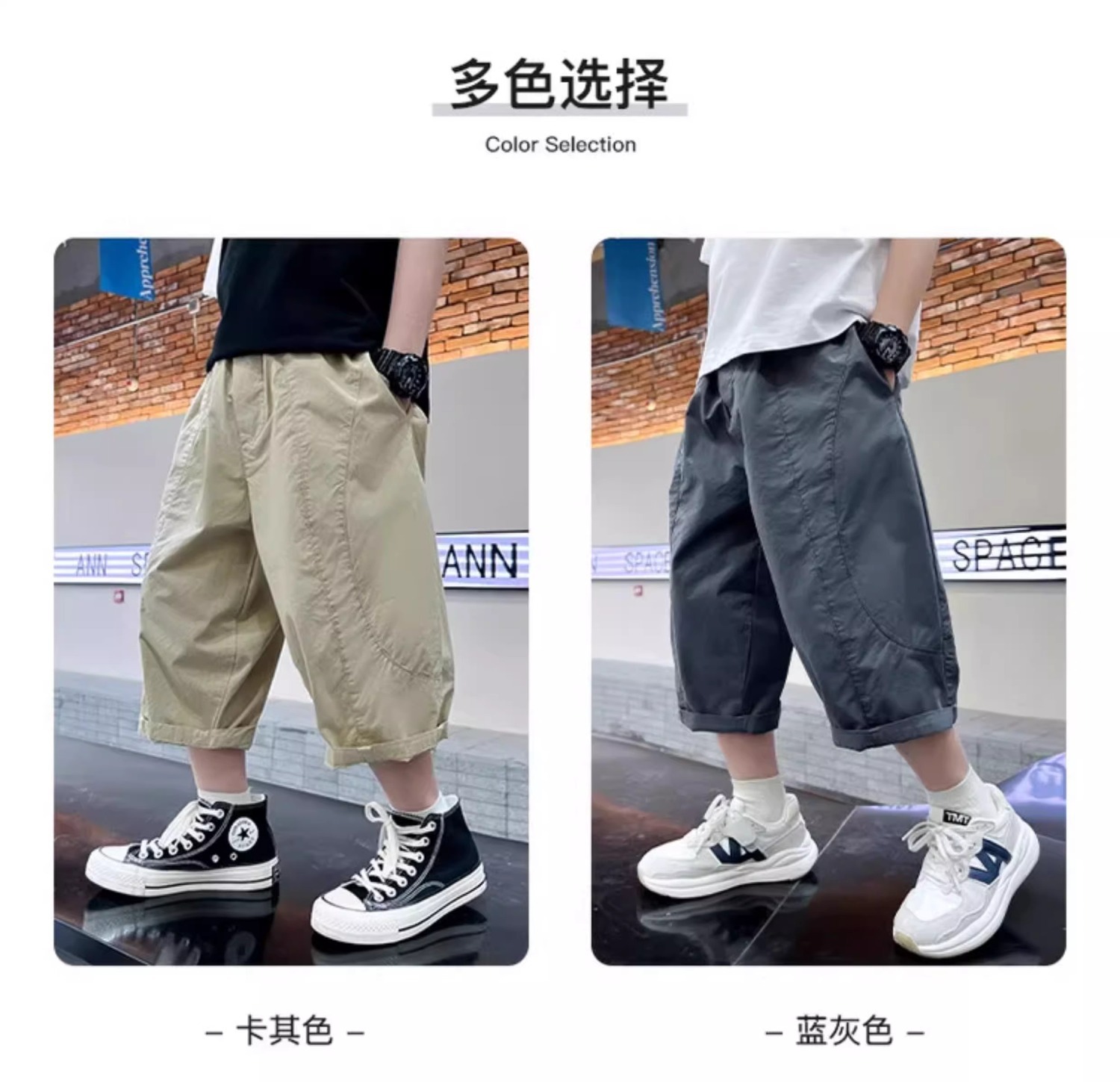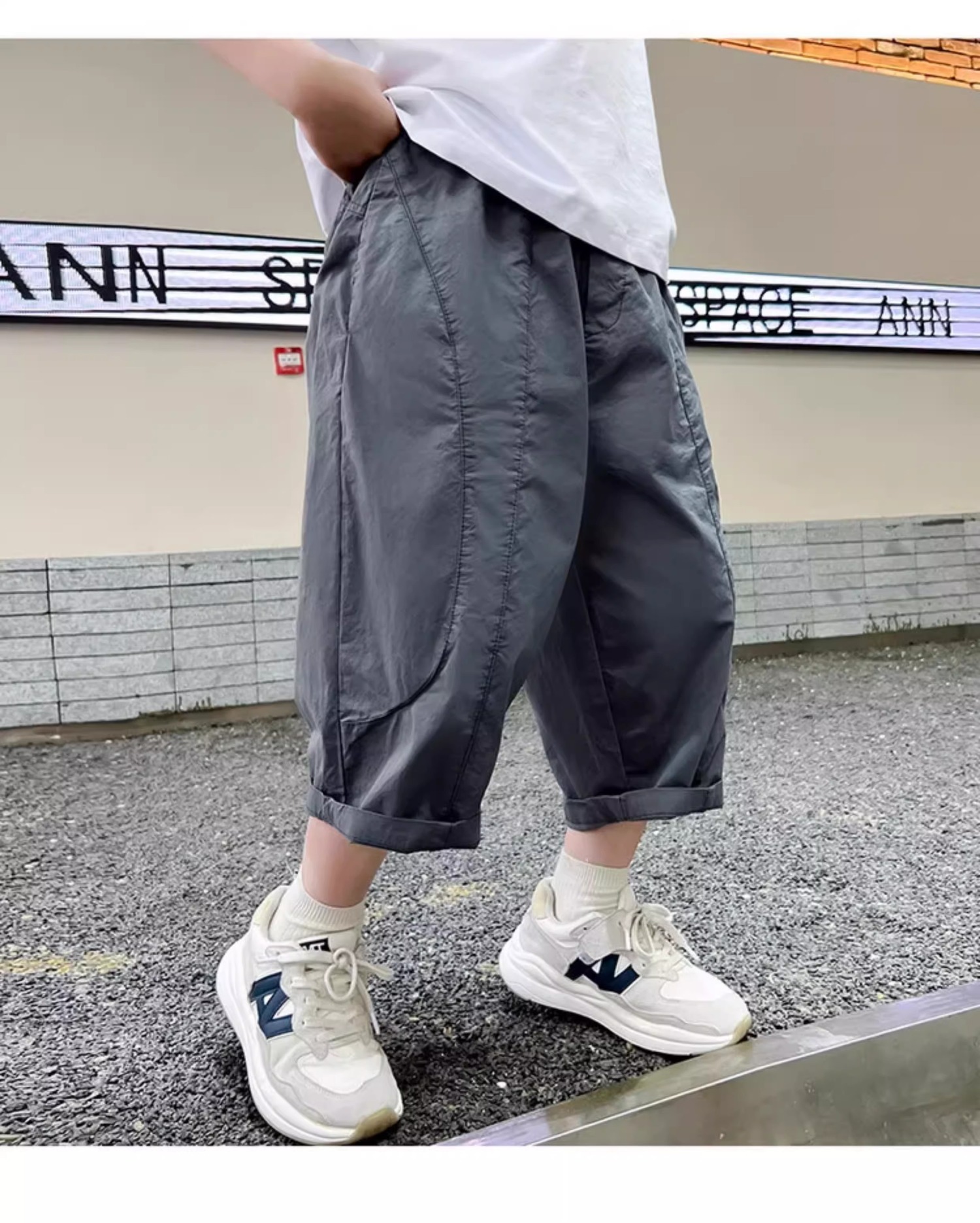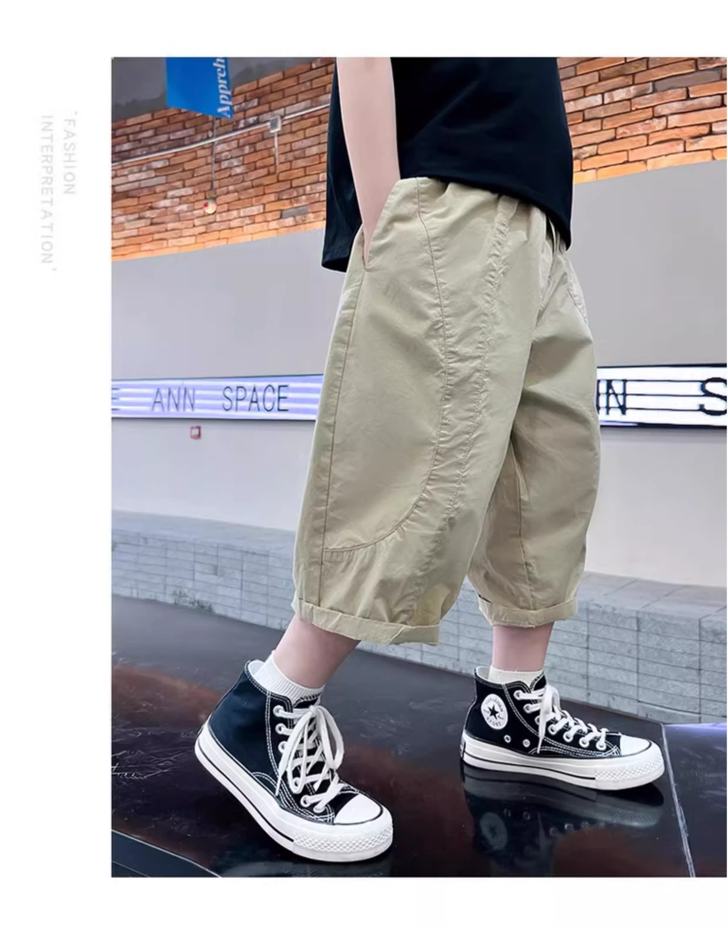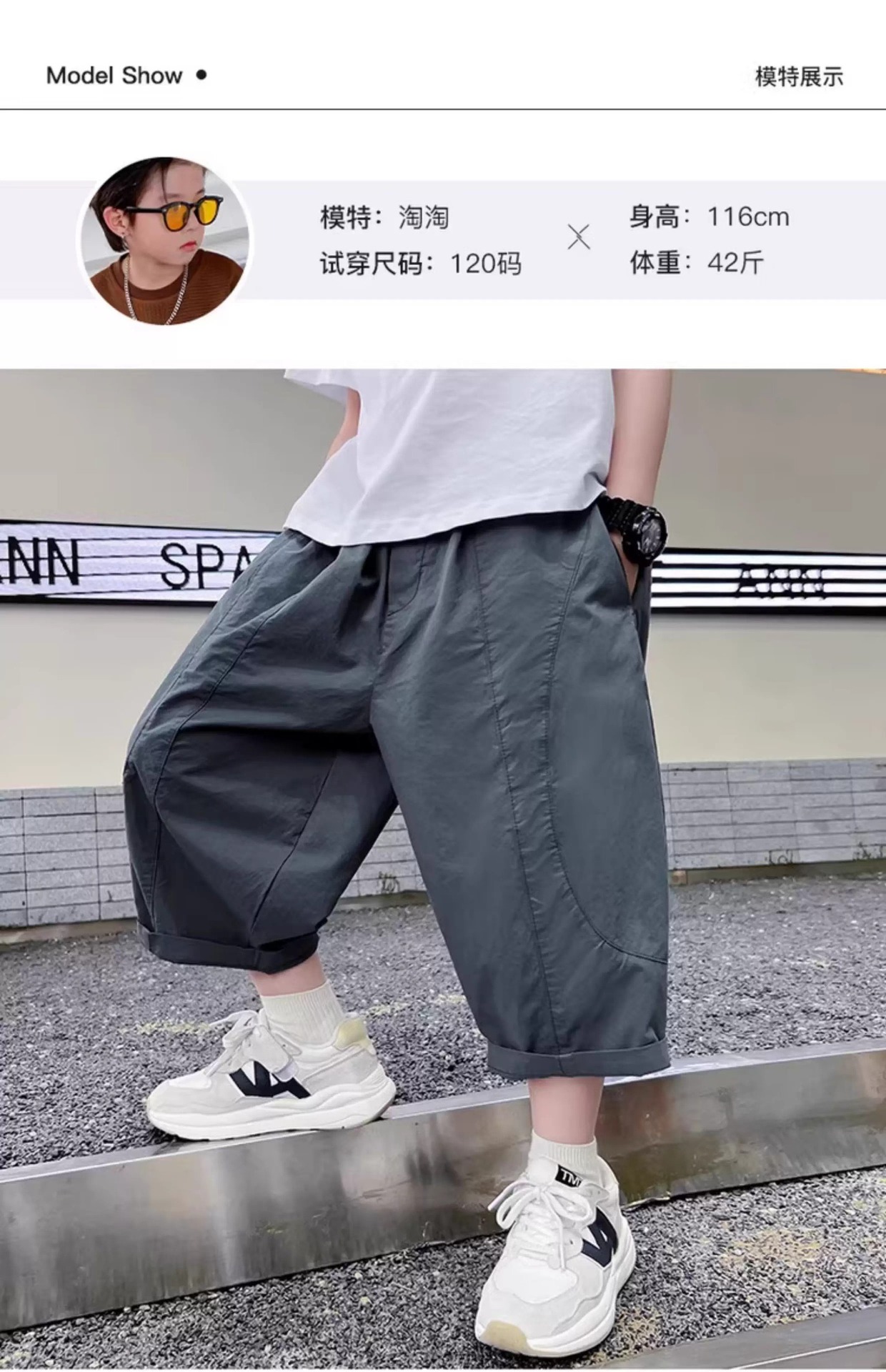 남아용 여름 루즈 캐주얼 크롭 팬츠, 와이드 레그 반바지, 주름 디자인, 스포츠 니치, 중대형 어린이를 위한 다용도 스타일스토어 가기