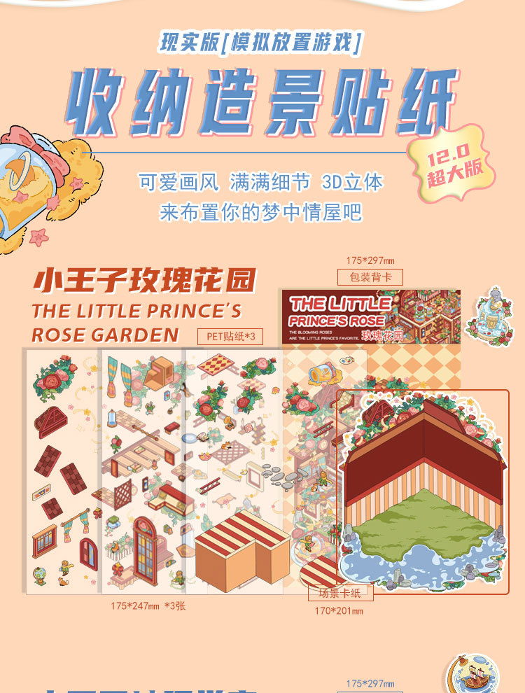 대형 버전 12.0 어린 왕자 시리즈 조경 스티커 입체 스티커 2.5D 귀여운 DIY 감압 장면 스티커스토어 가기