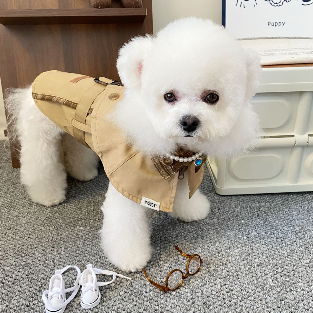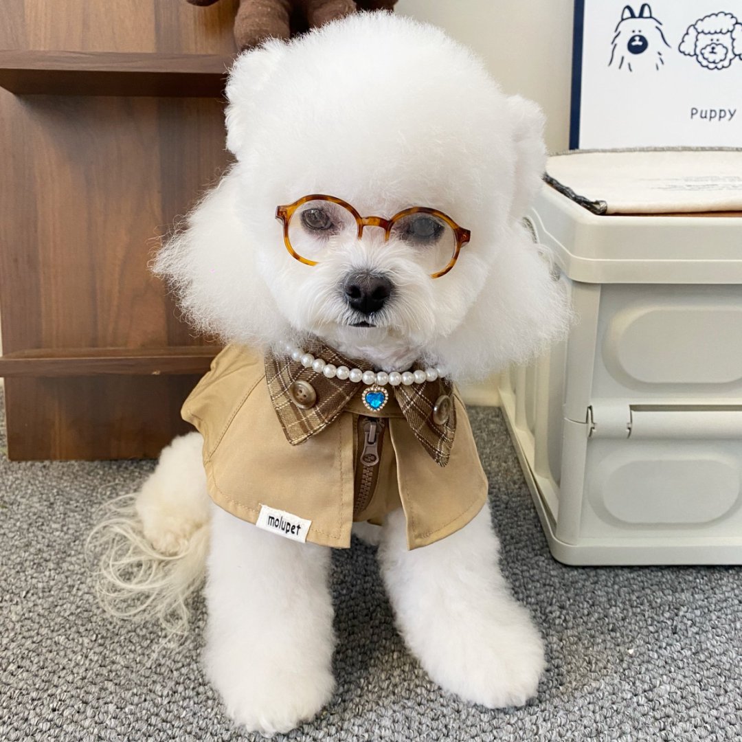 영국풍 코트 원피스 인형 칼라 벨트 애완동물 의류 강아지 고양이 뚱뚱한 강아지 옷 스커트 애완동물 의류스토어 가기