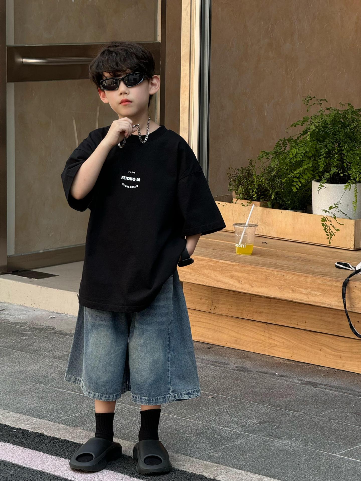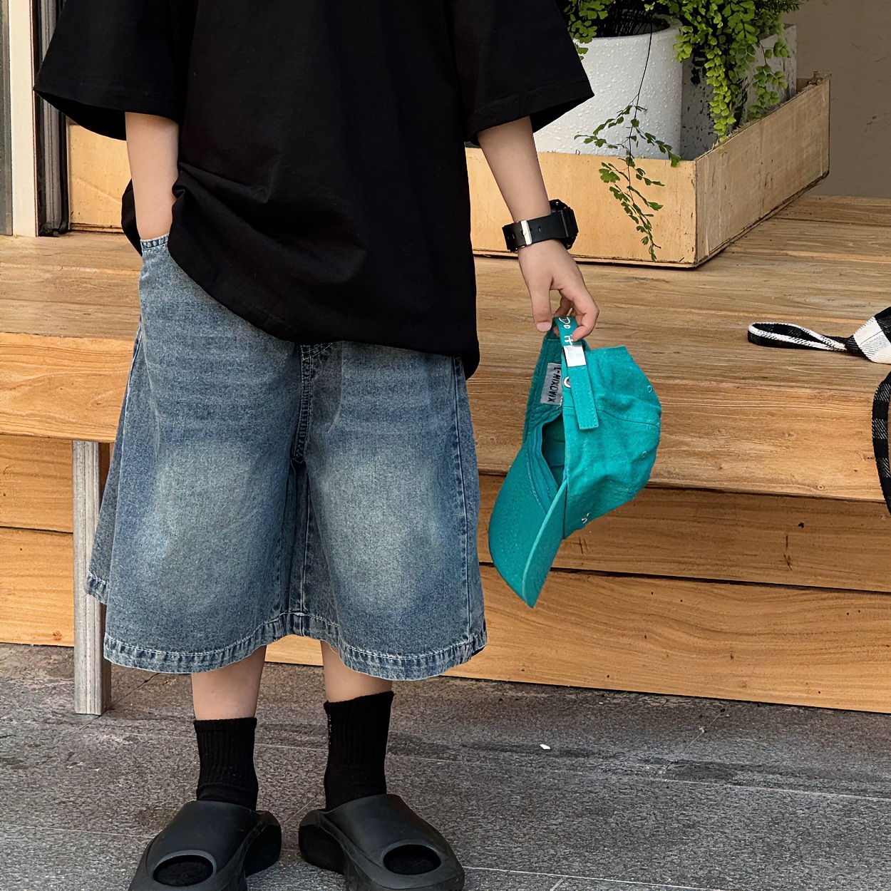 Tairu 2025 새로운 여름 한국 스타일 소년 패션 솔리드 컬러 디자인 청바지 다목적 아동 반바지 유행스토어 가기