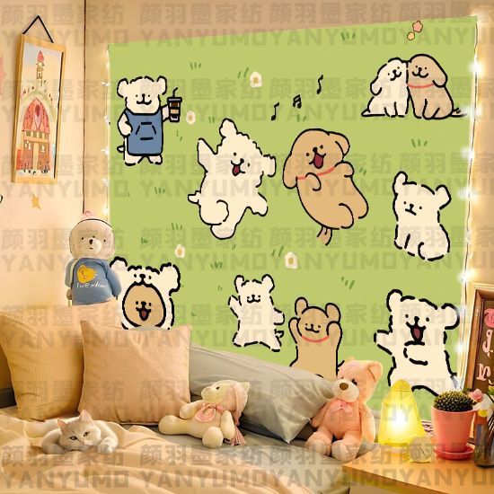 귀여운 만화 개 배경 천 인 라인 강아지 교수형 천 방 장식 태피스트리 기숙사 임대 방 레이아웃스토어 가기
