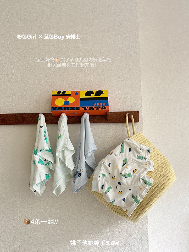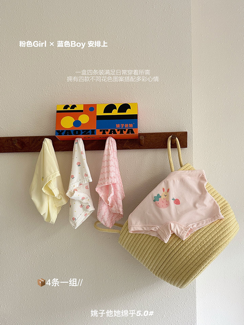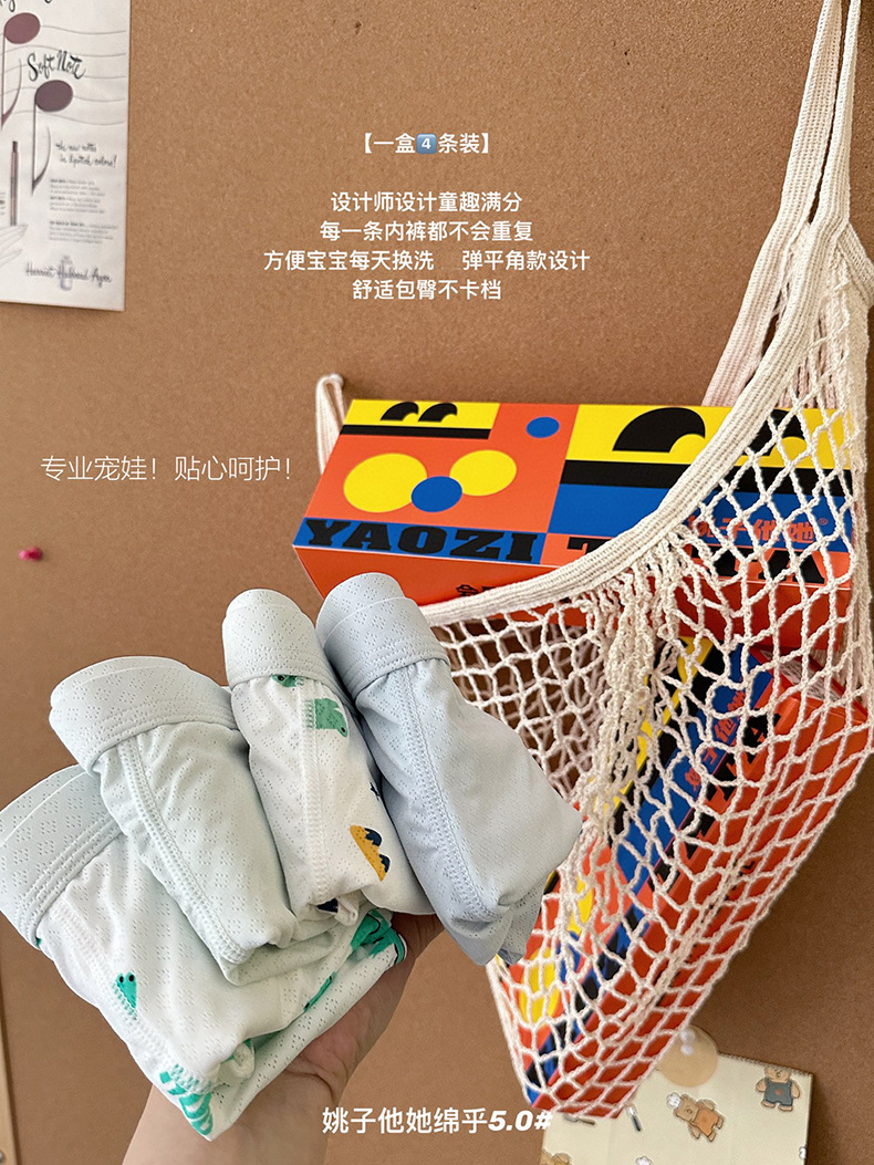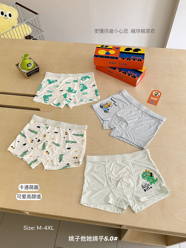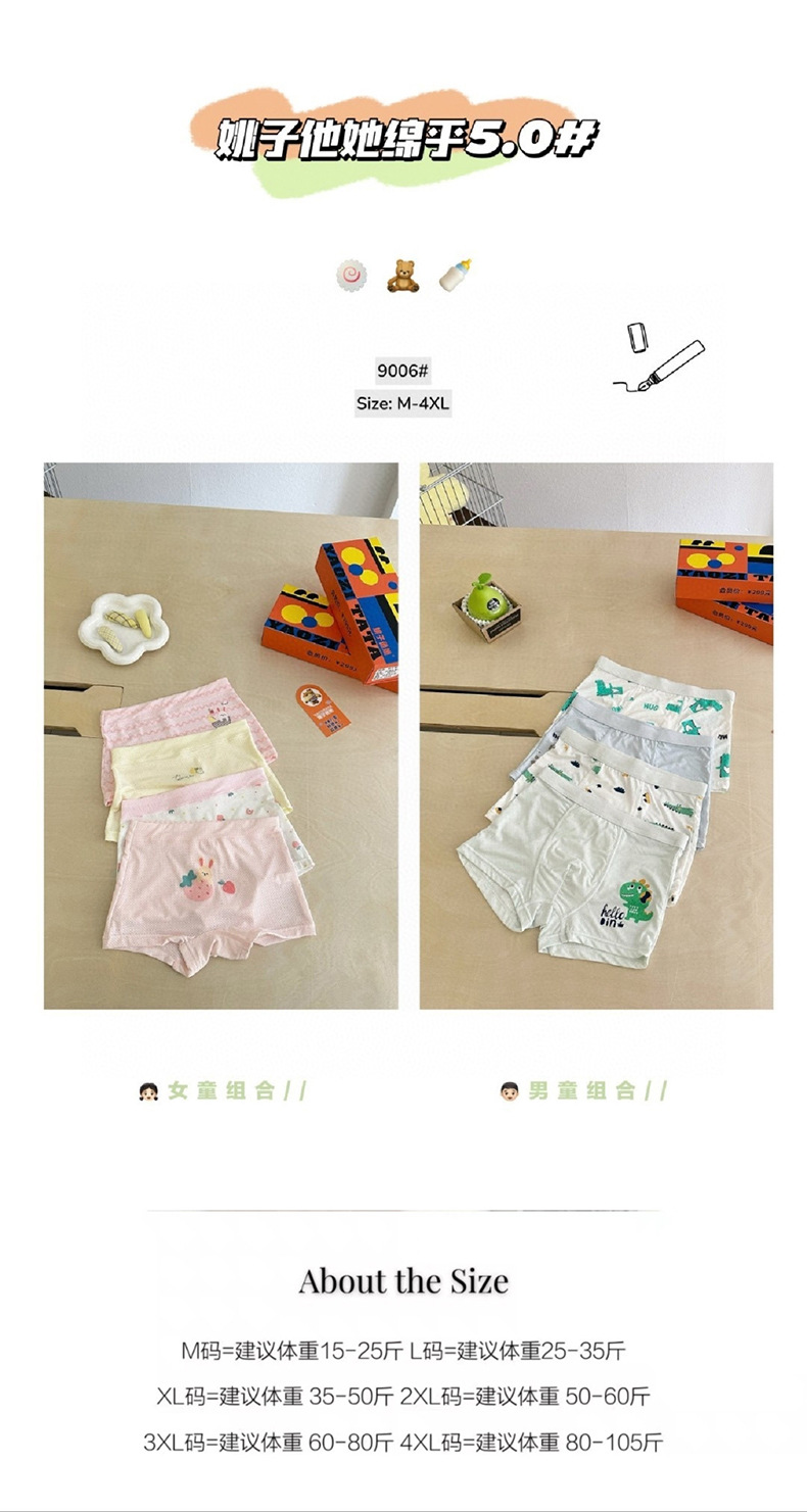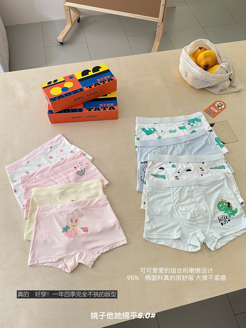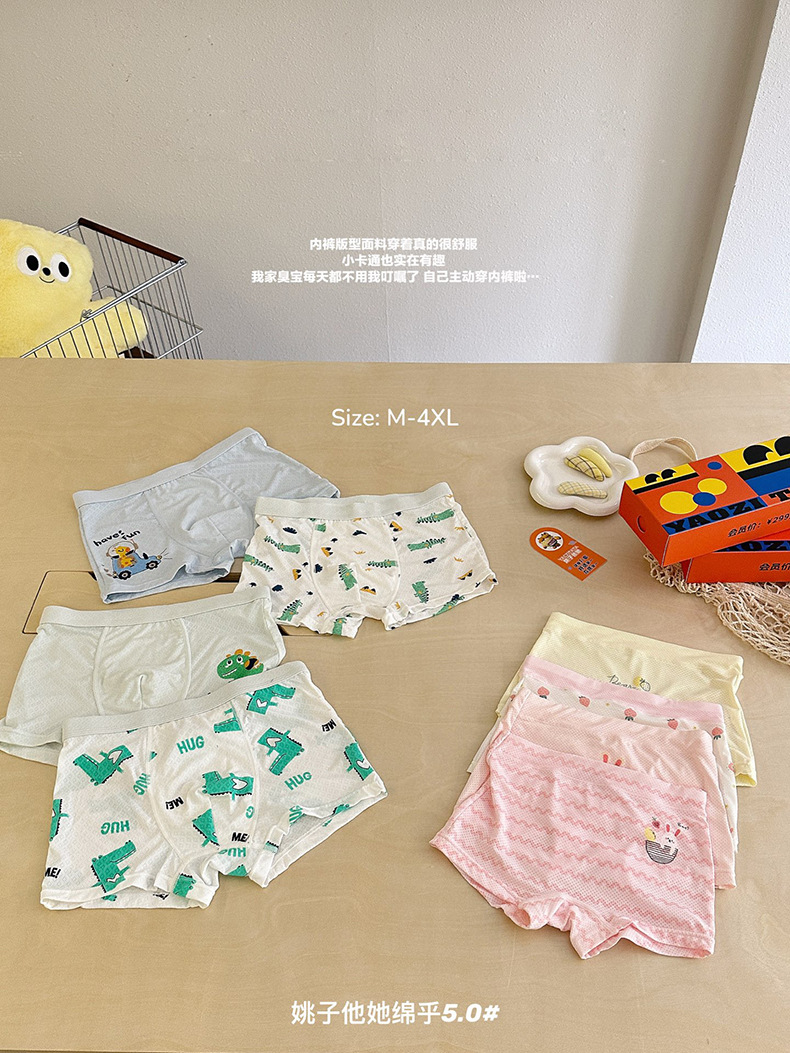 9006 Yao Zita She Mianhu 5.0 어린이 속옷 중대형 어린이를위한 원활한 복서 팬티 소년 소녀 여름 복서 반바지스토어 가기