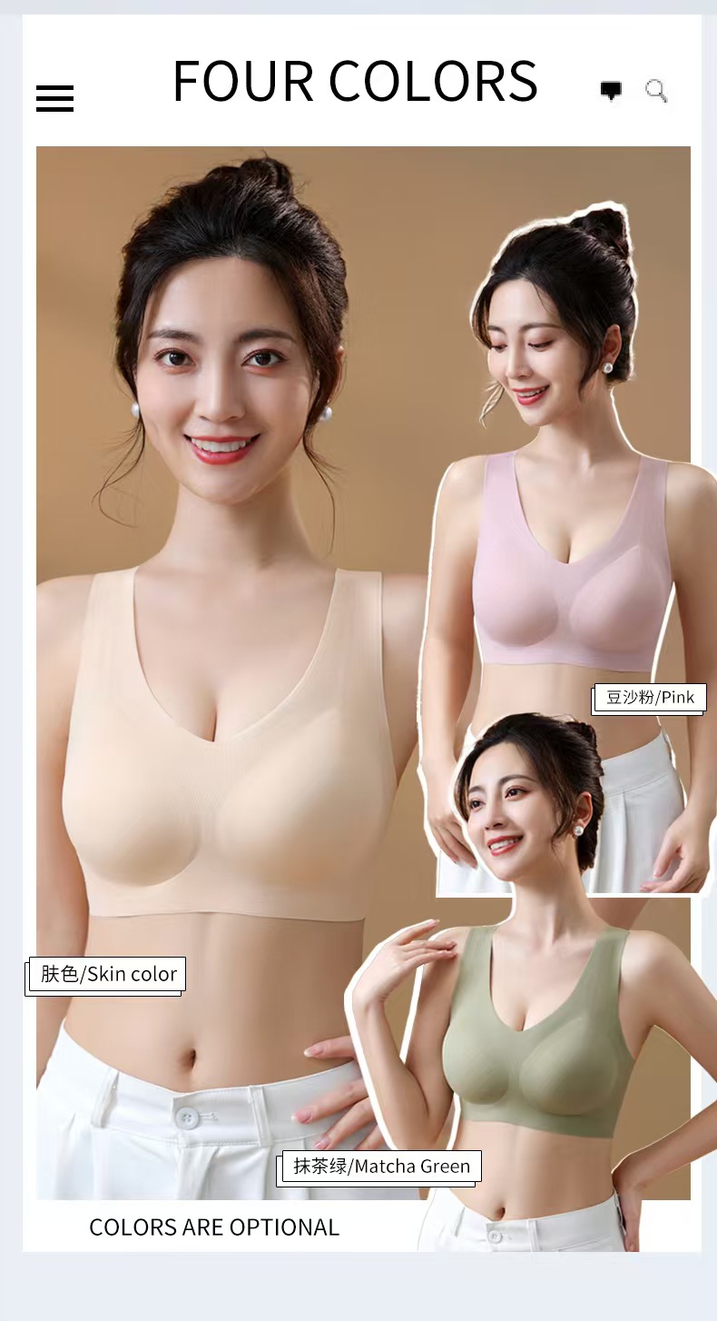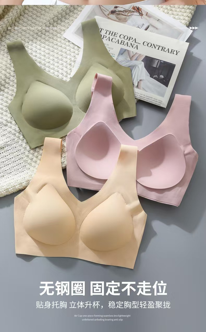 와이어 프리 원피스 고정 컵 심리스 속옷 여성용 대형 편안한 푸시 업 조끼 얇은 스포츠 아름다운 등 브라스토어 가기