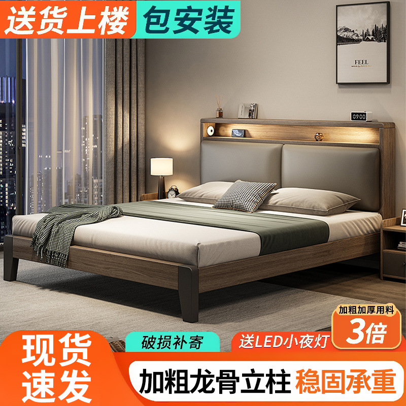 원목 침대 더블 1.8x 2m 마스터 침실 홈 1.5m 소형 아파트 임대 B&B 1.2m 심플 싱글 침대스토어 가기