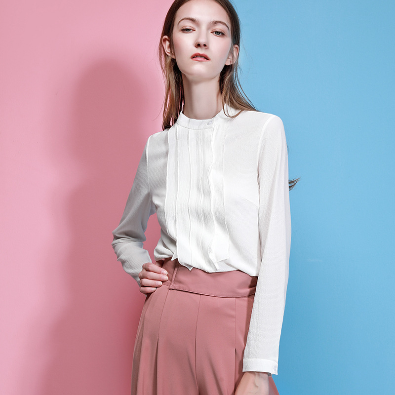 봄 신상 쉬폰 셔츠, 전문 셔츠, 작업복 상의, OL 태슬 셔츠, 여성용 솔리드 컬러 한국식 바닥 셔츠스토어 가기