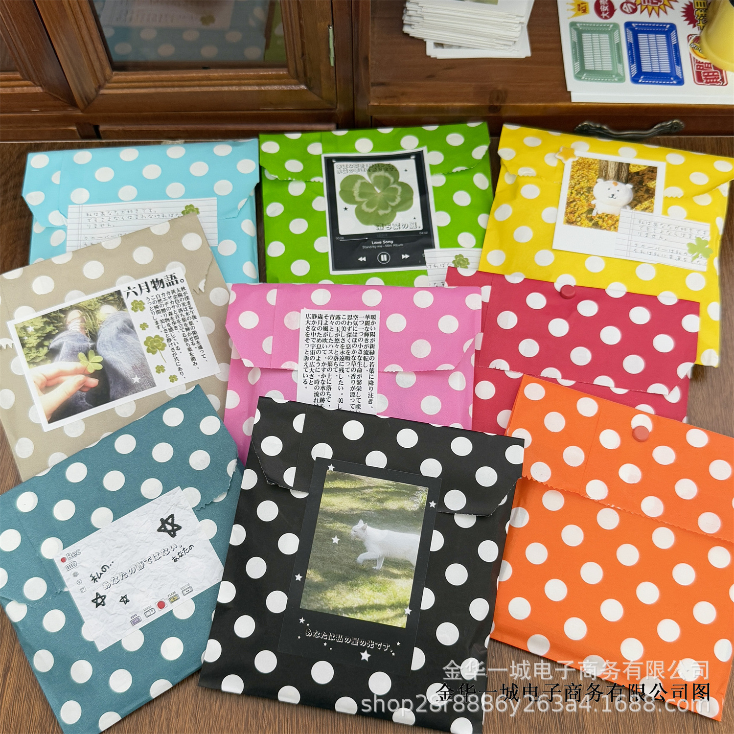 고급스러운 컬러풀한 폴카 도트 봉투, 카드 포장재, 포장봉투, 앤틱 스타일 지퍼백, 선물봉투스토어 가기