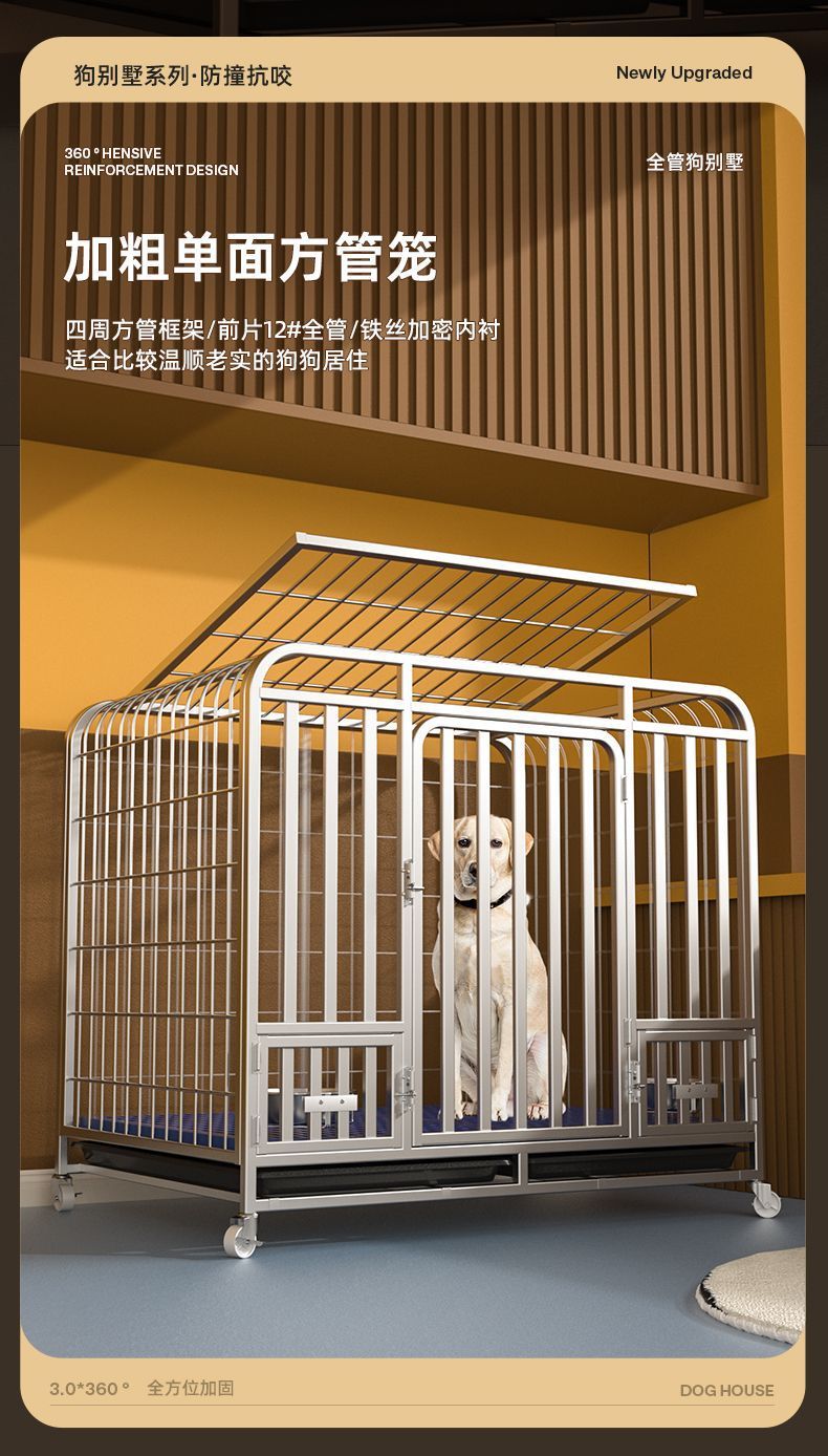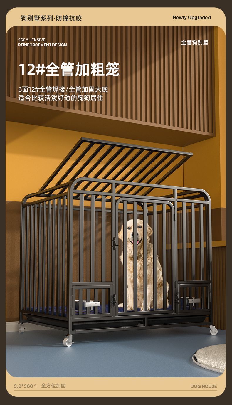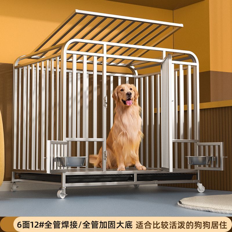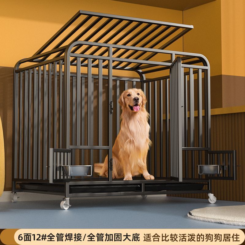 대형견용 변기가 있는 개 케이지, 중형견용 케이지, 실내 골든 리트리버 래브라도 두껍고 강화된 애완견 케이지