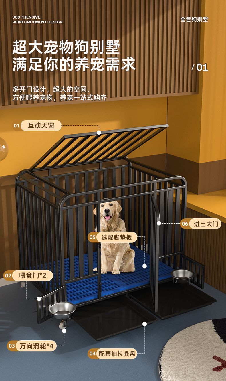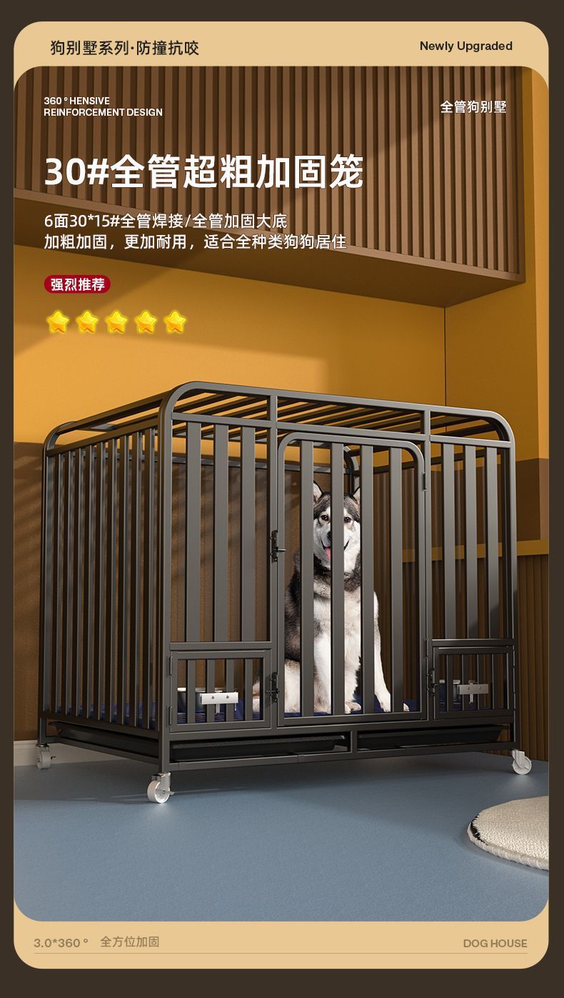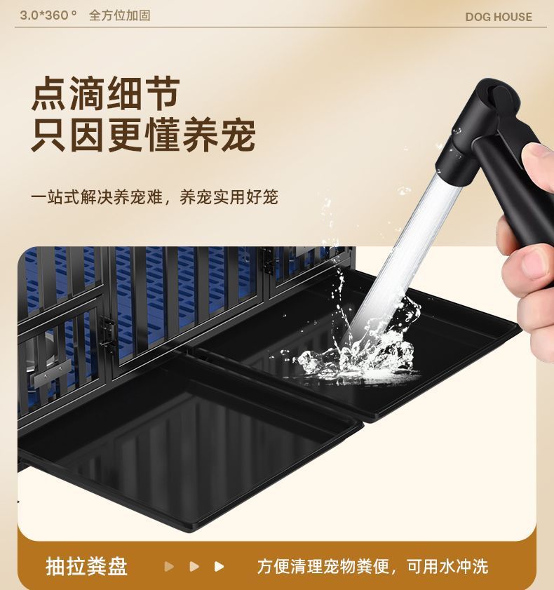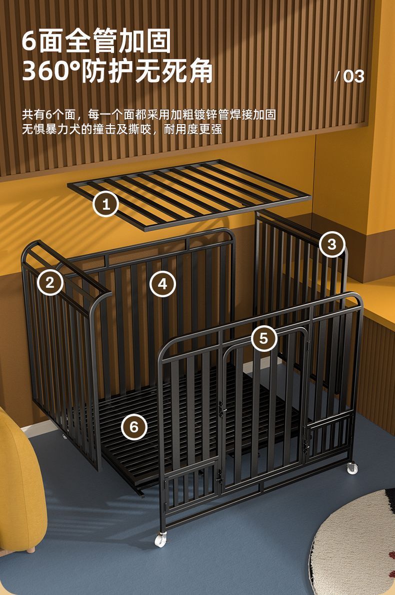 대형견용 변기가 있는 개 케이지, 중형견용 케이지, 실내 골든 리트리버 래브라도 두껍고 강화된 애완견 케이지