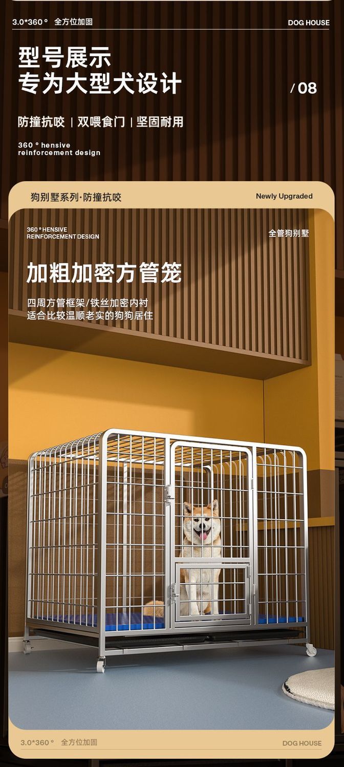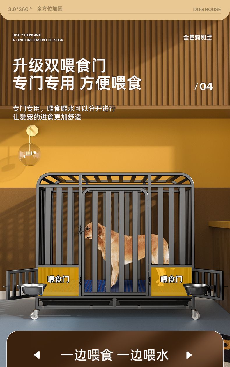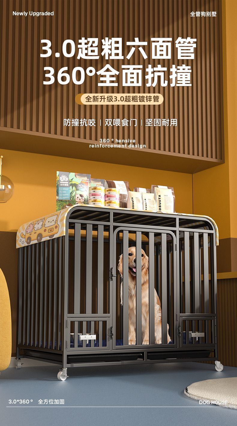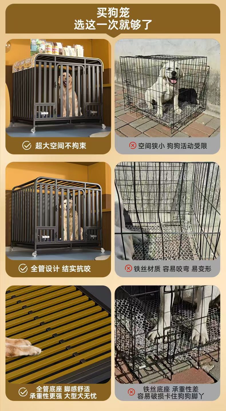 대형견용 변기가 있는 개 케이지, 중형견용 케이지, 실내 골든 리트리버 래브라도 두껍고 강화된 애완견 케이지스토어 가기