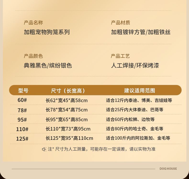 • QI-124*92*108cm 길이, 너비, 높이가 대형견에게 권장됩니다.