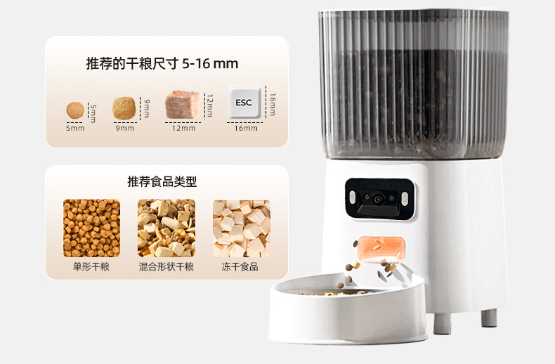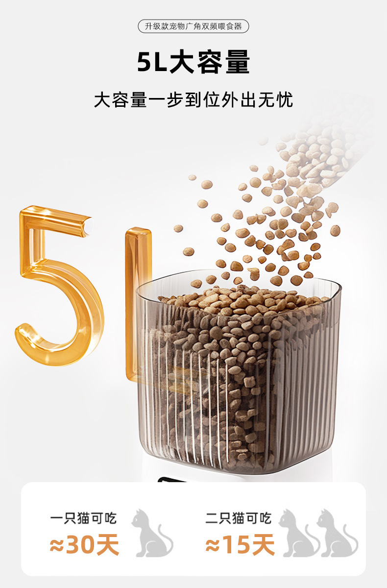 국경 간 신제품 자동 고양이 먹이 공급기 광각 비디오 이중 주파수 5G 타이밍 및 정량 애완 동물 지능형 먹이 공급기 개 그릇