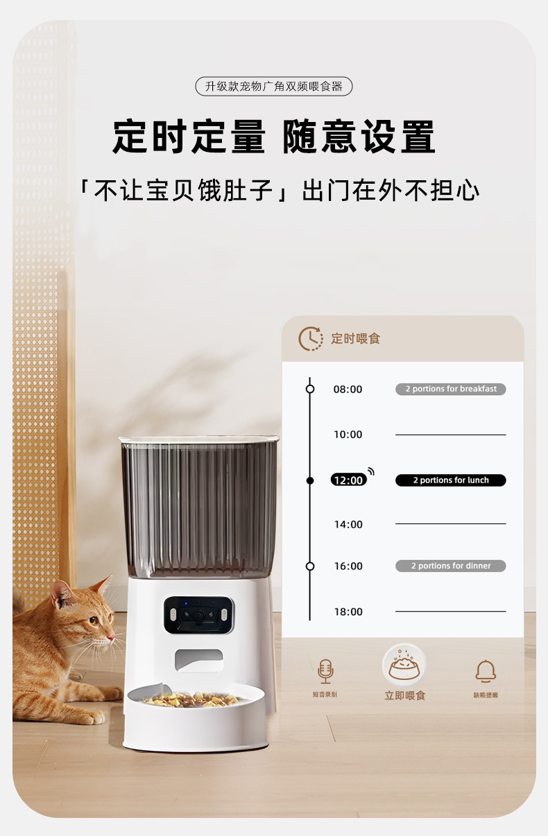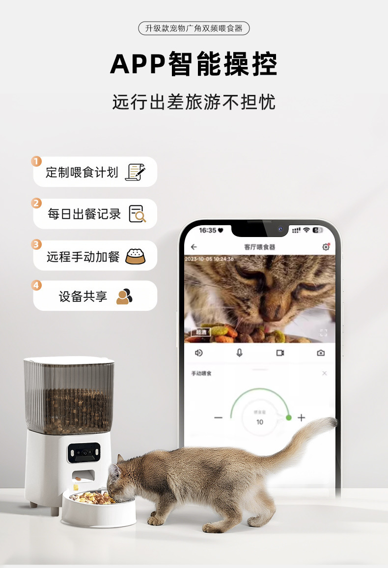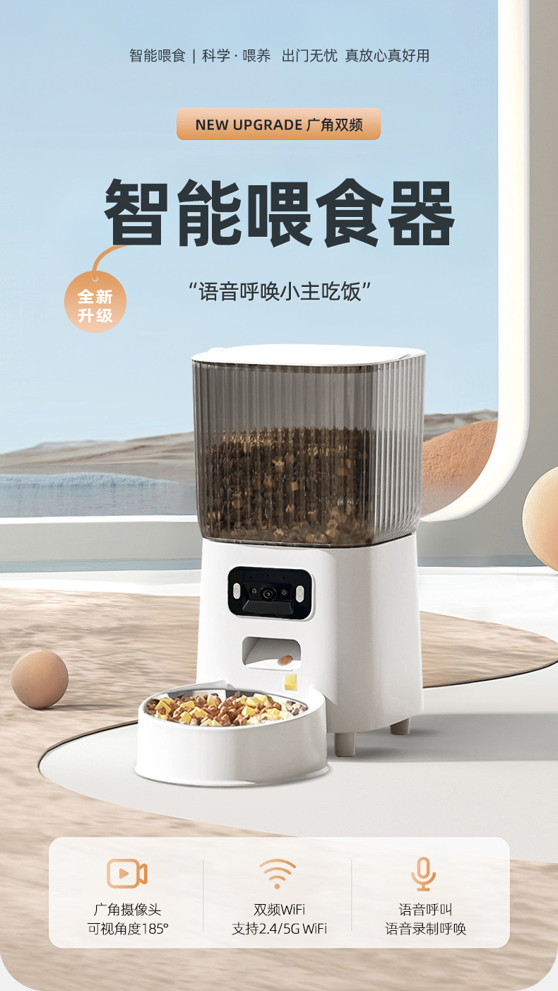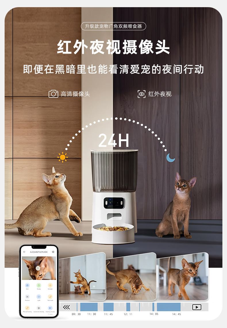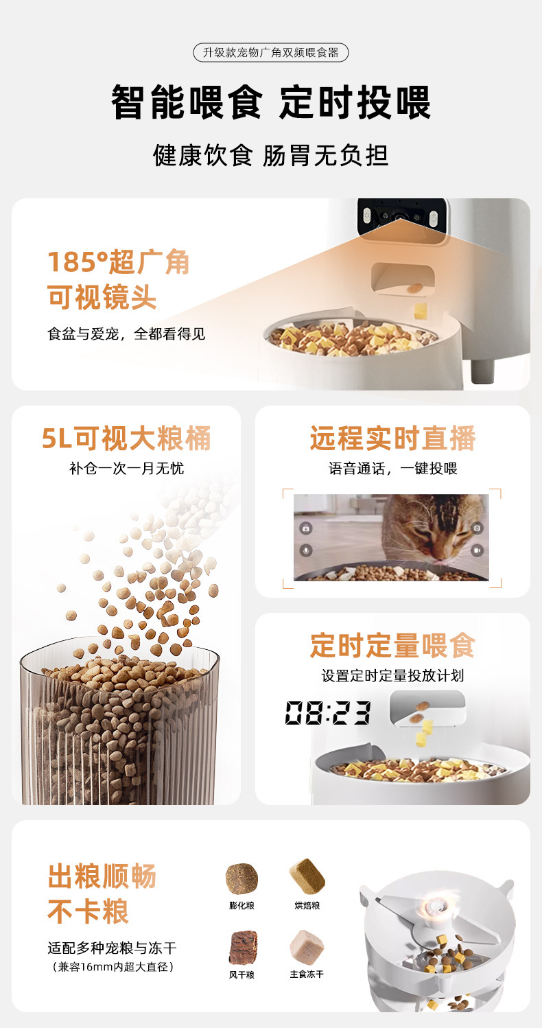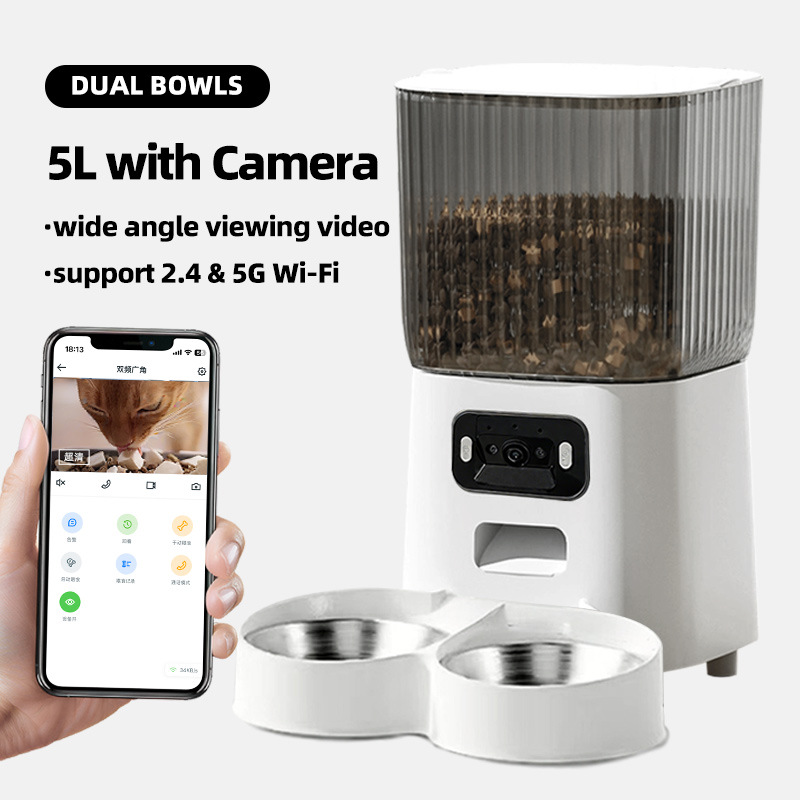 국경 간 신제품 자동 고양이 먹이 공급기 광각 비디오 이중 주파수 5G 타이밍 및 정량 애완 동물 지능형 먹이 공급기 개 그릇스토어 가기